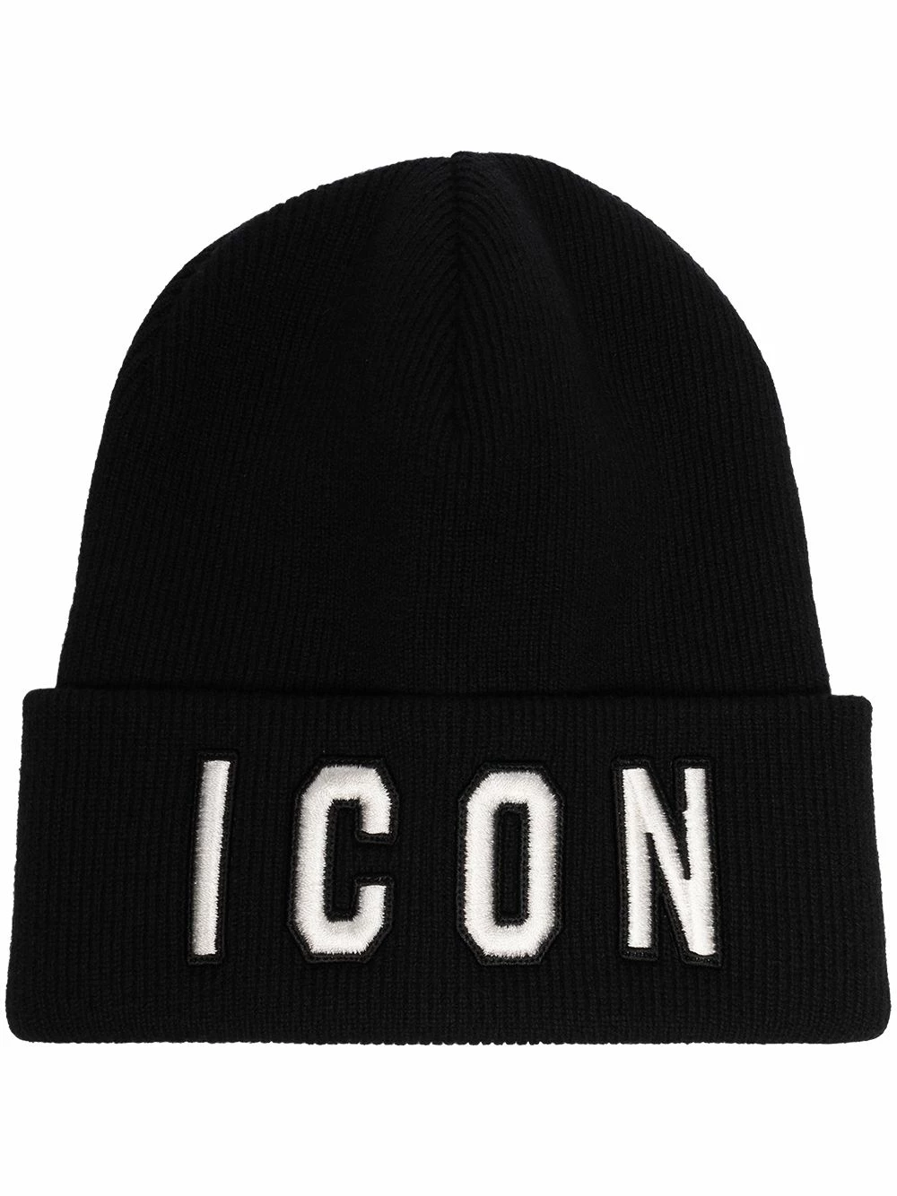 Motif Icon signature, design tricoté, ourlet retroussé. Matière : laine.