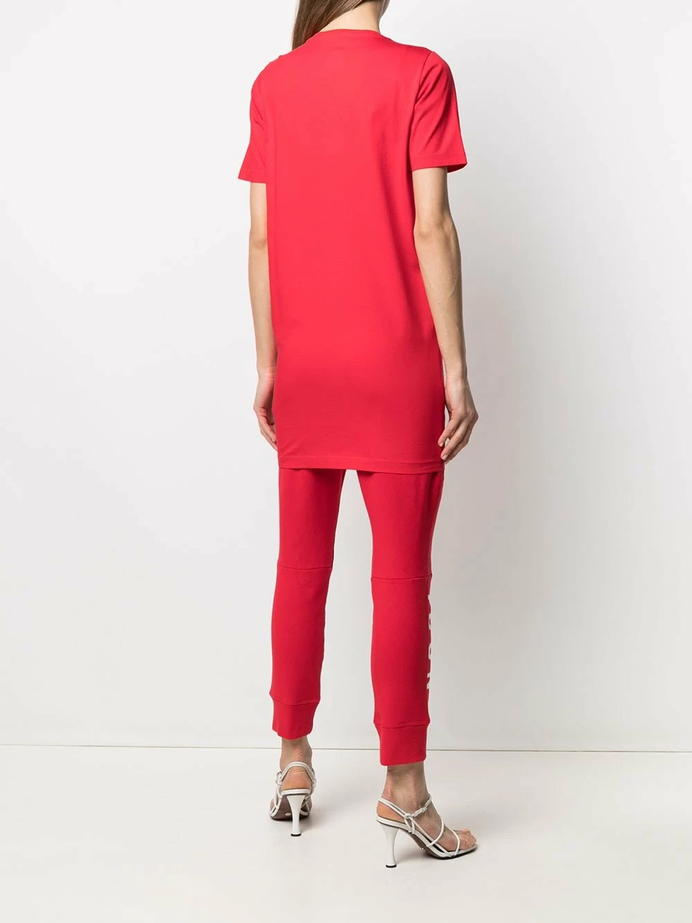 Encolure ronde, tricot point jersey, ourlet droit, manches courtes. Couleur : rouge. Matière : coton.