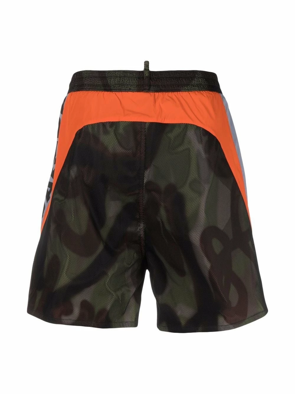 Empiècement en mesh, motif camouflage, logo imprimé sur le côté, taille élastique à lien de resserrage, coupe courte. Veillez à essayer les maillot de bain par-dessus vos propres sous-vêtements.
