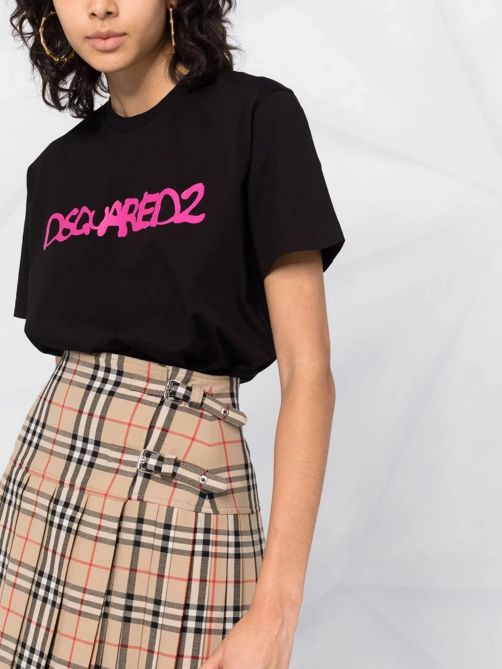 Tricot point jersey, logo imprimé sur le devant, encolure ronde, manches courtes, ourlet droit. Matière : coton.
