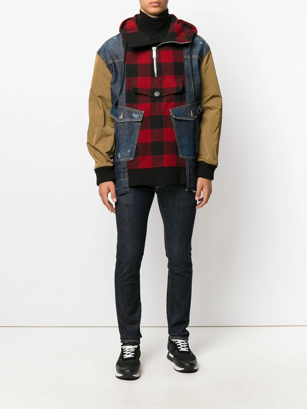 Veste en coton mélangé et laine multicolores à design patchwork Dsquared2 avec capuche à lien de resserrage, manches longues, motif à carreaux et ourlet et poignets nervurés.