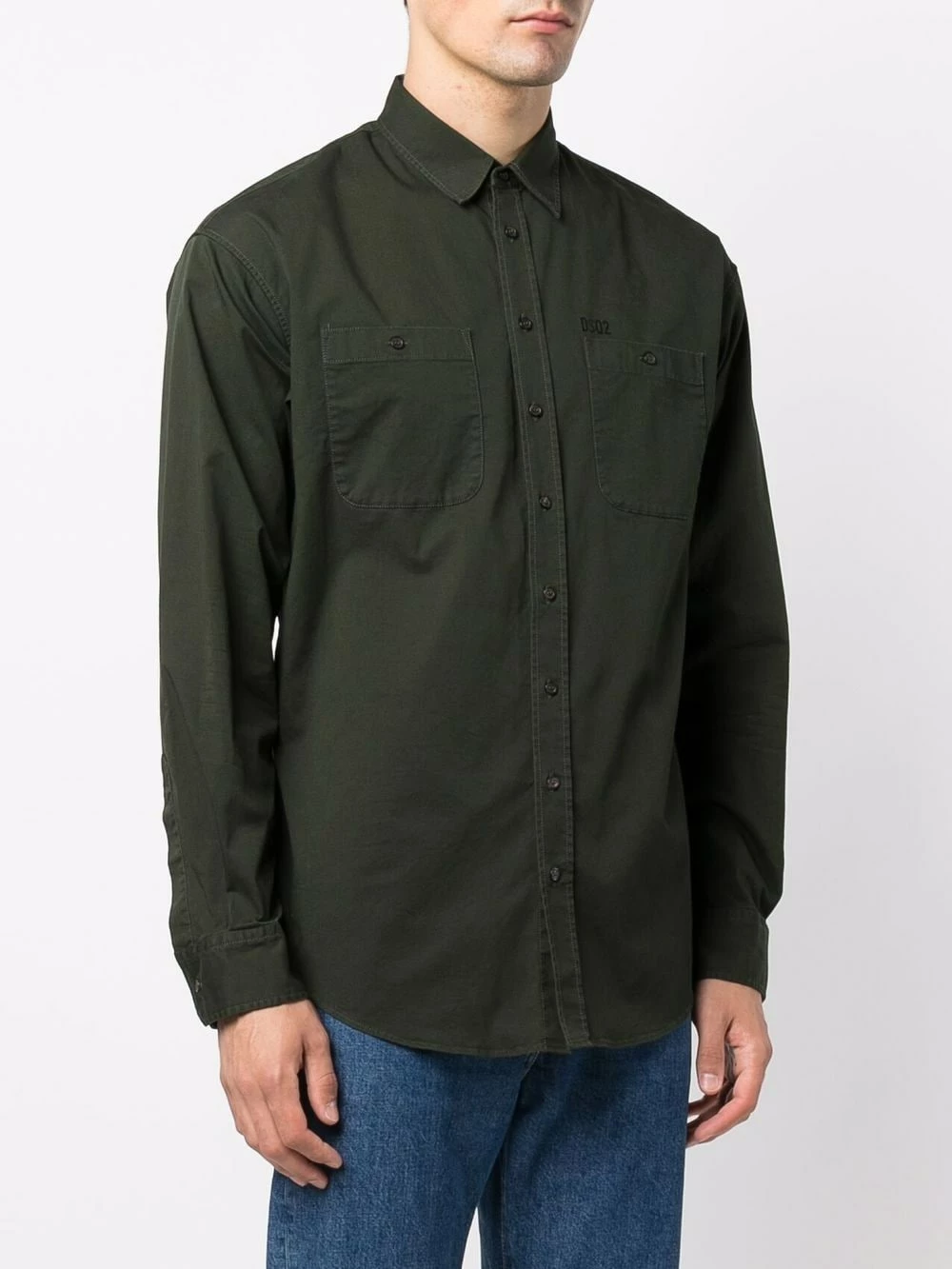 Logo imprimé à la poitrine, poche poitrine plaquée, coutures contrastantes, boutonnière sur le devant, manches longues. Couleur : vert. Matière : coton.