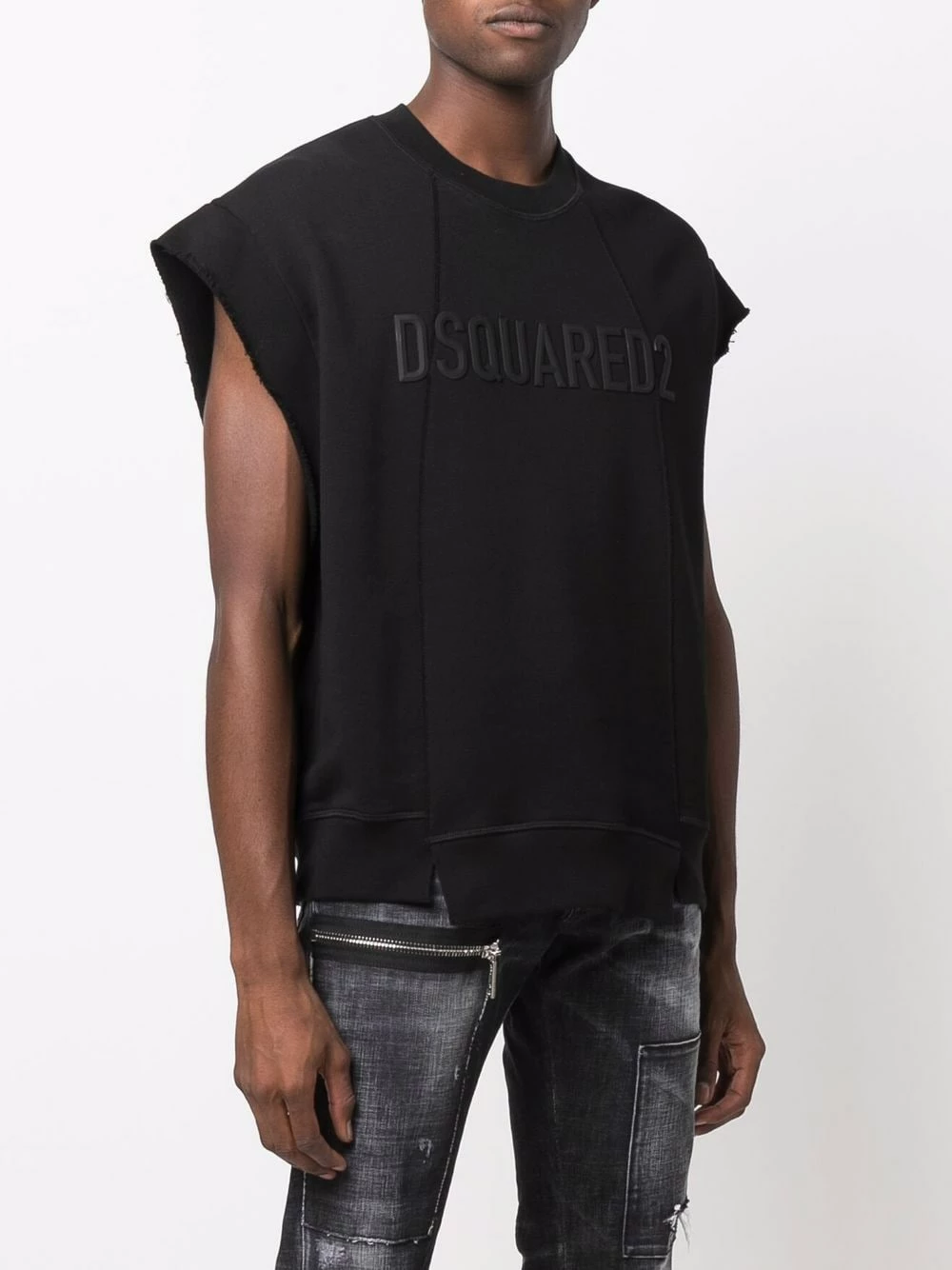 Polaire, logo embossé sur le devant, encolure ras du cou, design sans manches, ourlet droit.