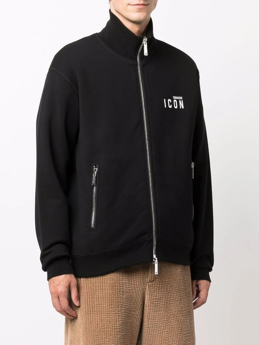 Logo imprimé à la poitrine, encolure ronde, fermeture zippée devant, manches longues, manches à poignets resserrés. Couleur : noir. Matière : coton.