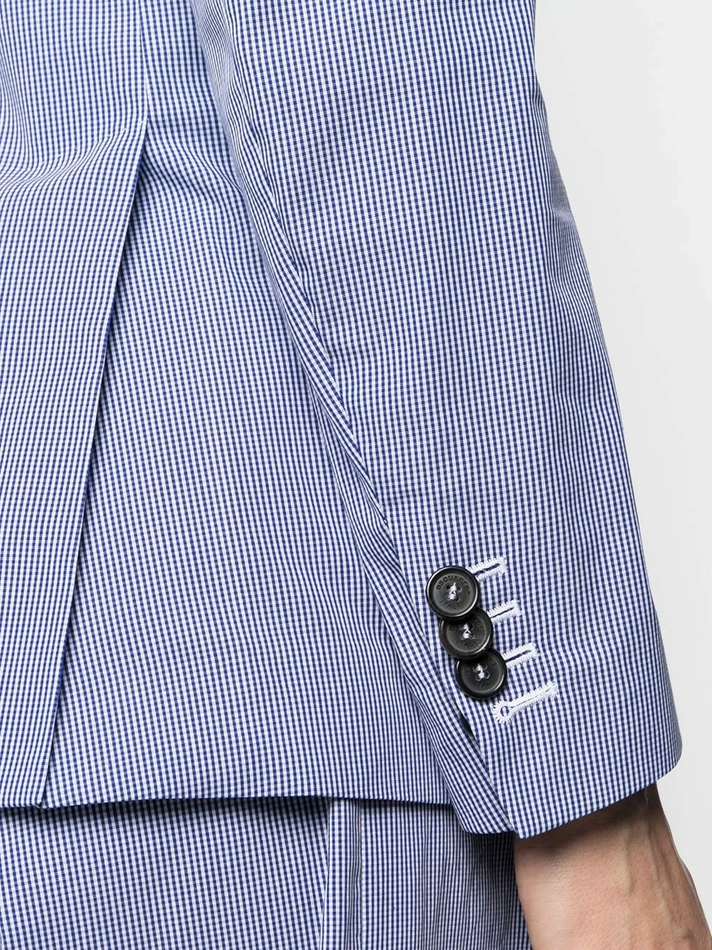 Velours côtelé, revers crantés, boutonnière sur le devant, manches longues, poignets boutonnés, coupe cintrée. Matière : coton.