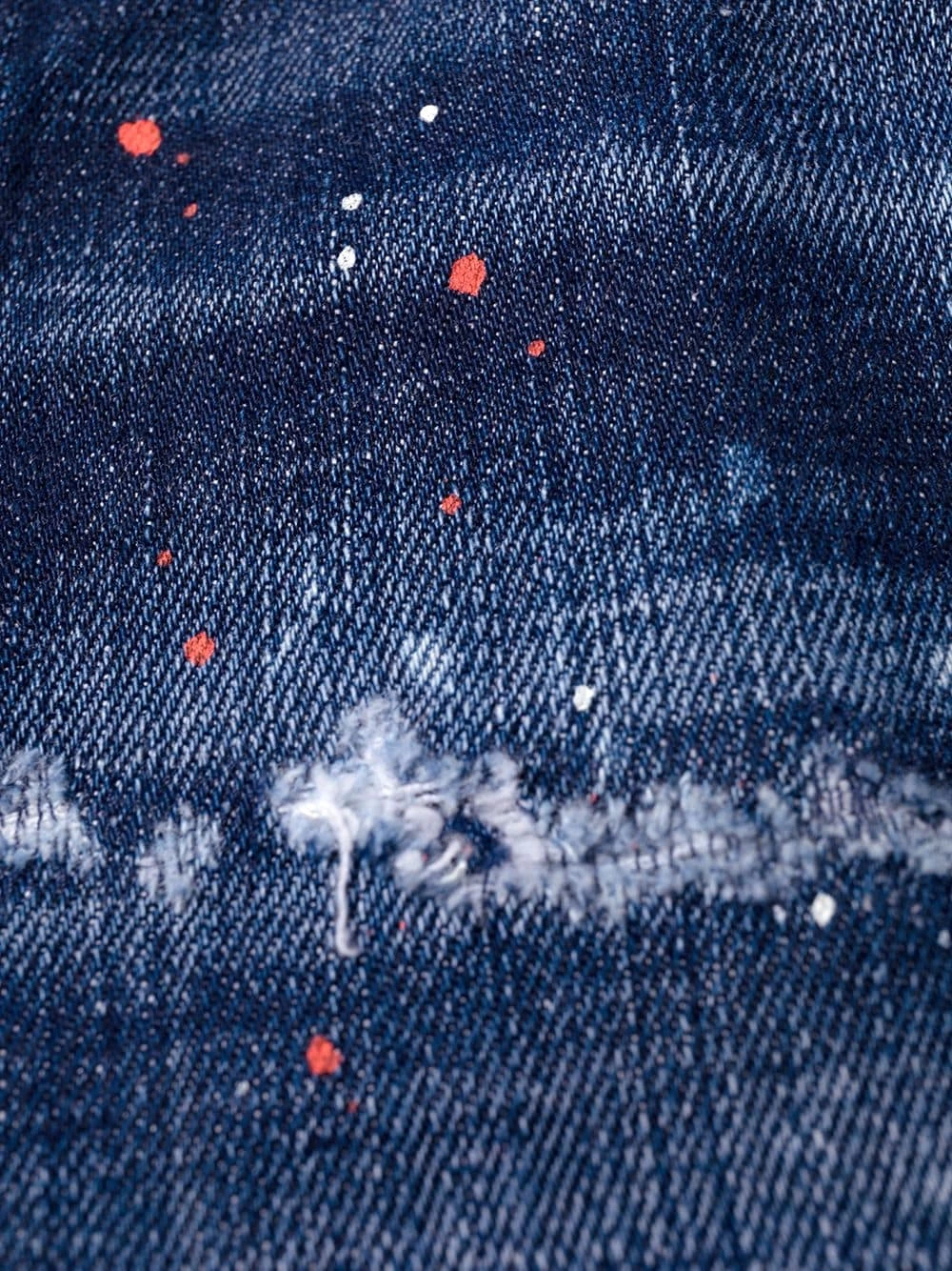 Taille mi-haute, 5 poches classiques, fermeture à zip et boutons sur le devant, finitions à effet usé, coupe droite, coupe courte. Couleur : Bleu.