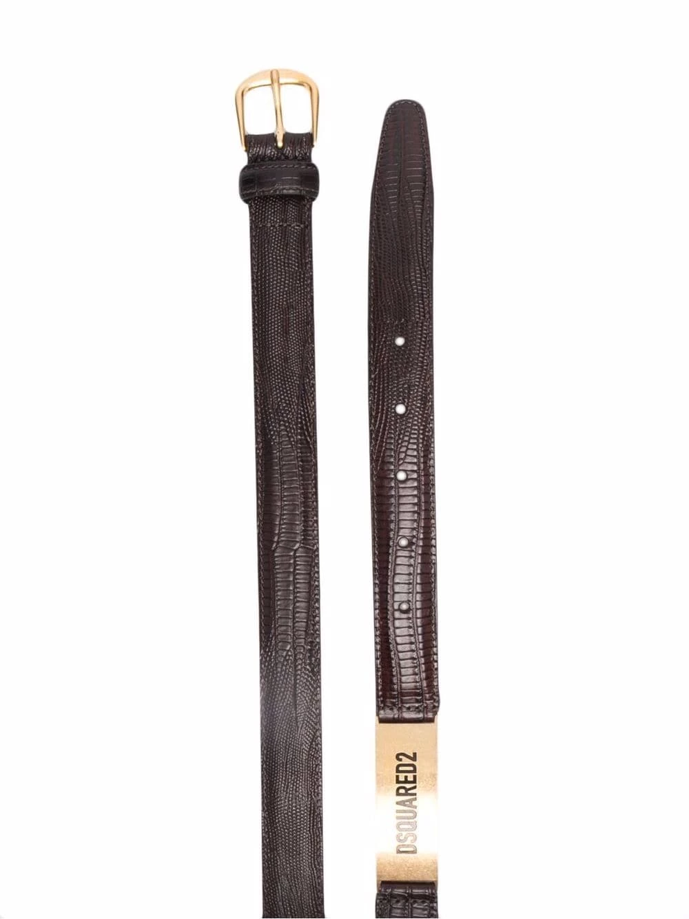 Finitions en métal doré, effet peau de crocodile, détails de perforation, fermeture à boucle.