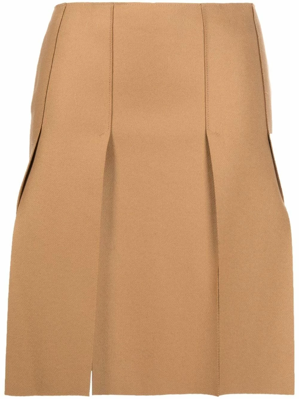 Taille haute, fermeture zippée à l’arrière, détail de fente, jupe plissée.