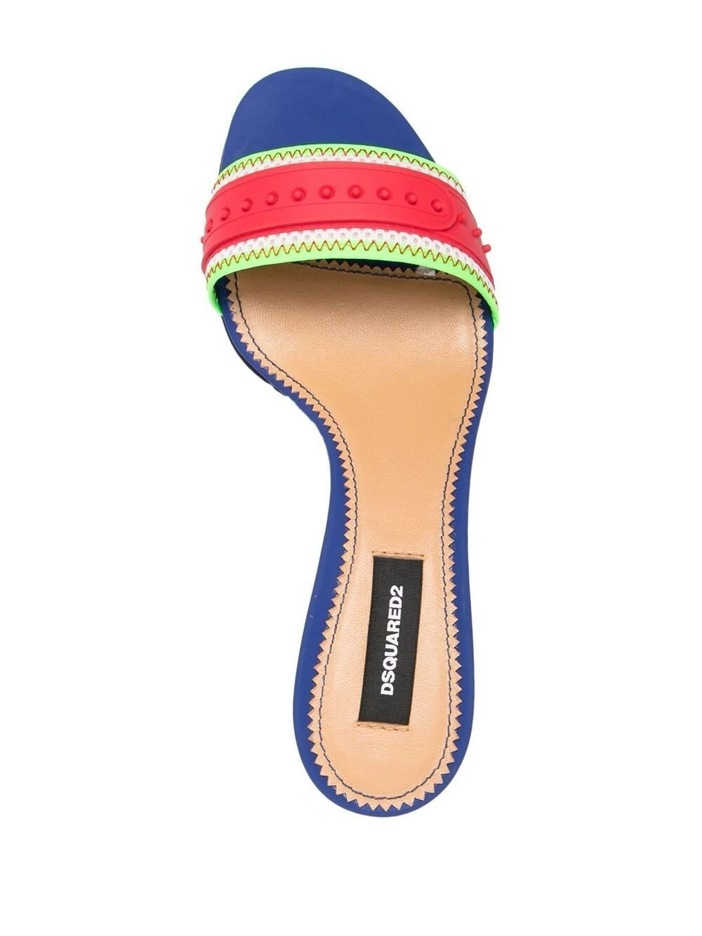 Bout ouvert, coutures contrastantes, fermeture à boutons pression, semelle intérieure à logo, design à enfiler, talon mi-haut. Matière : cuir.