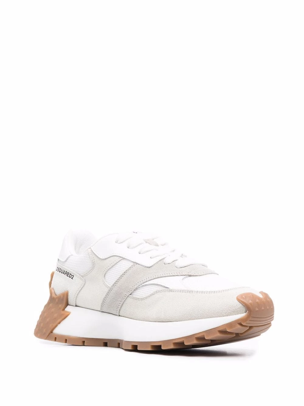Design à empiècements colour block, design à empiècements, finitions en daim, logo imprimé sur le côté, bout en amande, fermeture à lacer sur le devant, semelle intérieure griffée, semelle en caoutchouc.