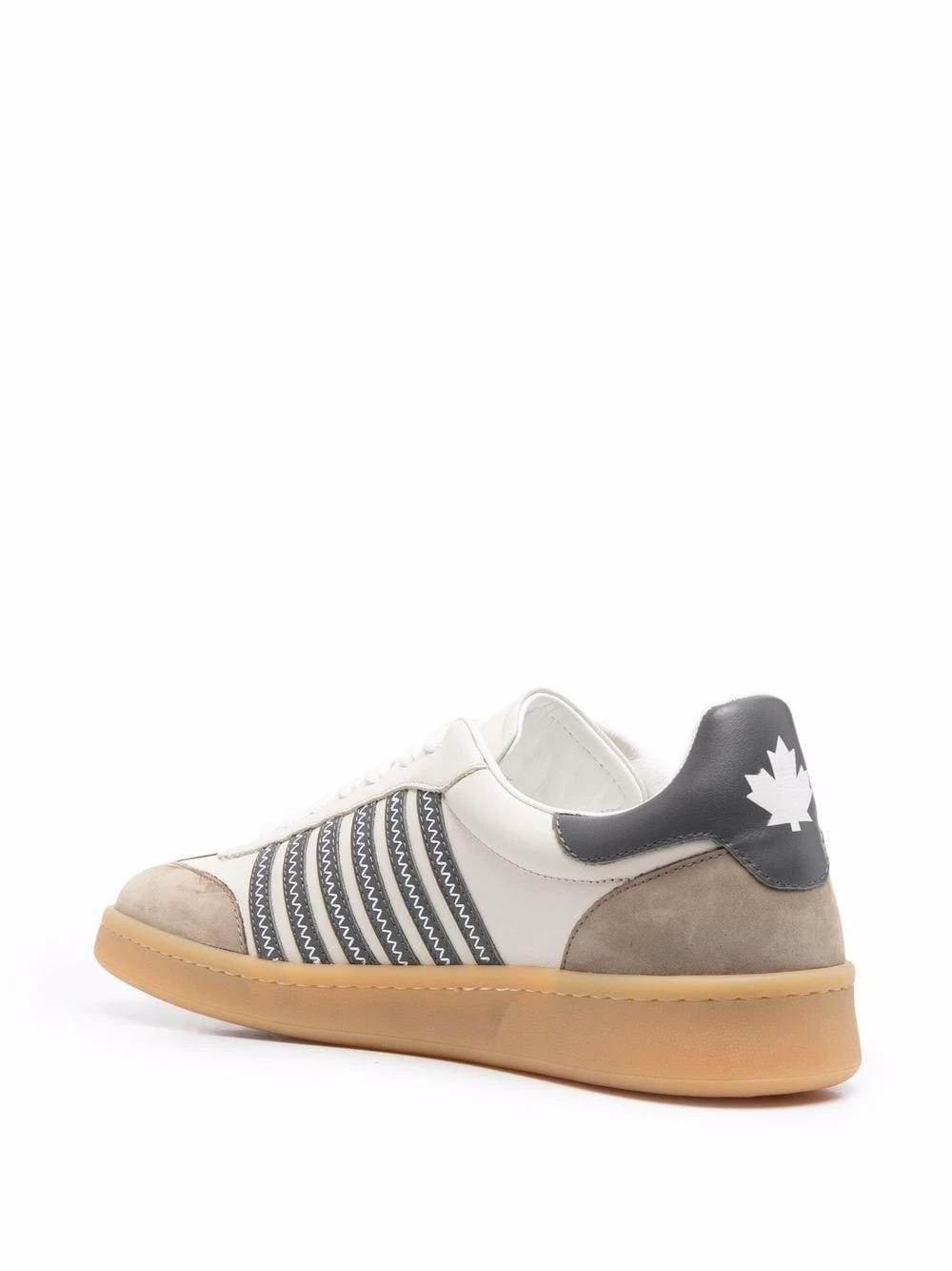 Détail de rayure latérale, logo embossé sur le côté, contrefort contrastant, fermeture à lacer sur le devant, bout rond. Matière : cuir.