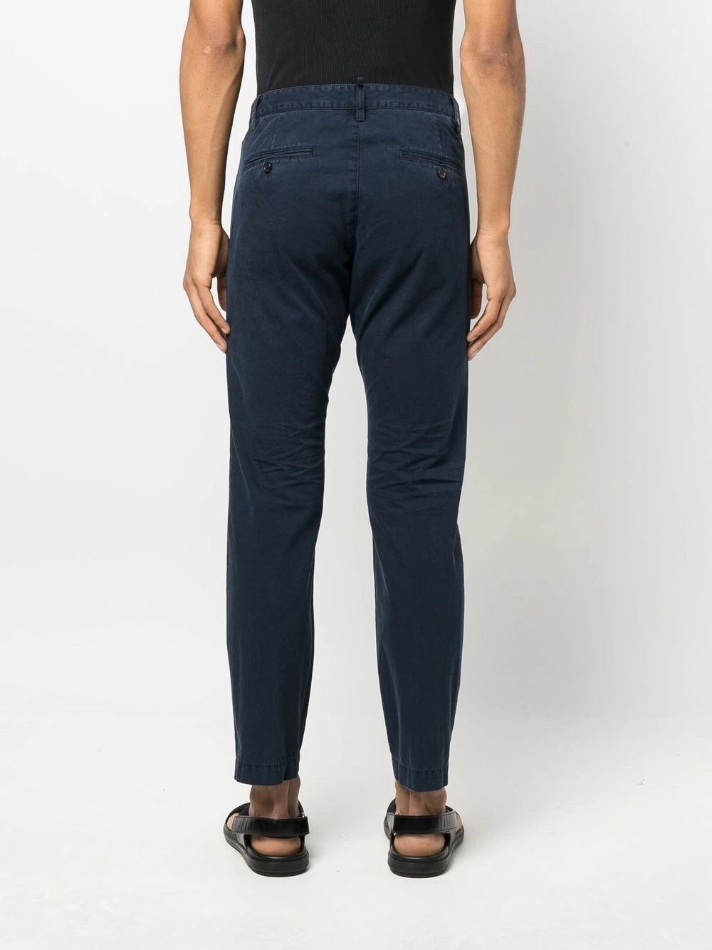 Détail nervuré, fermeture à zip et boutons sur le devant, coupe droite, deux poches latérales fendues, poches arrière passepoilées.