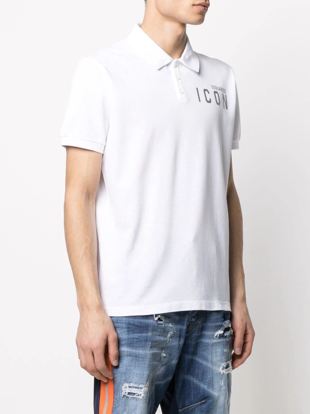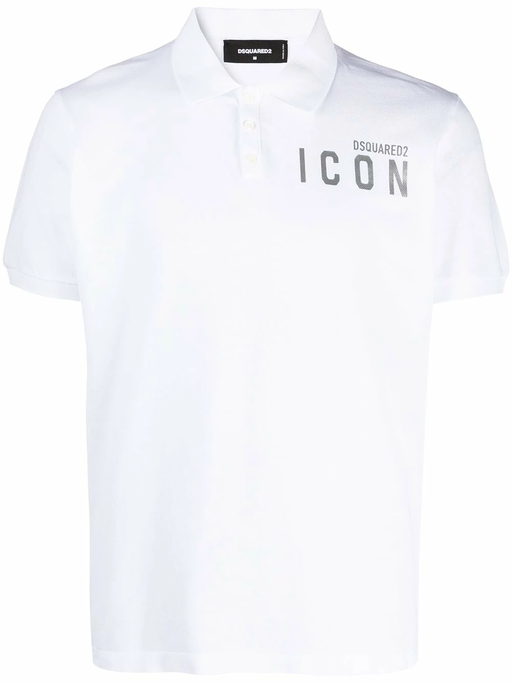 Logo imprimé à la poitrine, col classique, patte de boutonnage sur le devant, manches courtes, ourlet droit. Couleur : blanc. Matière : coton.
