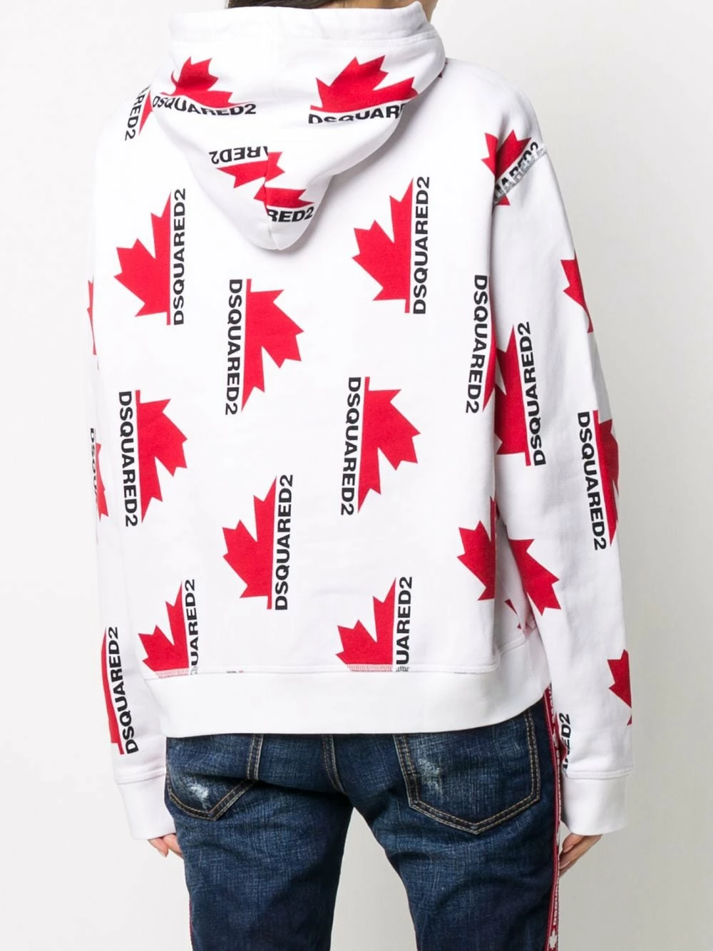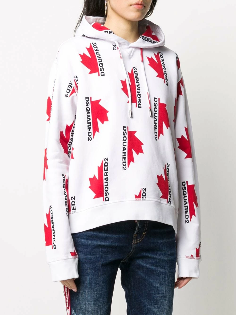 Sweat ample à logo imprimé et capuche en coton Dsquared2 avec imprimé all over de logos, capuche à lien de resserrage, effet d’épaules descendues, manches longues et coupe ample. Couleur : blanc.