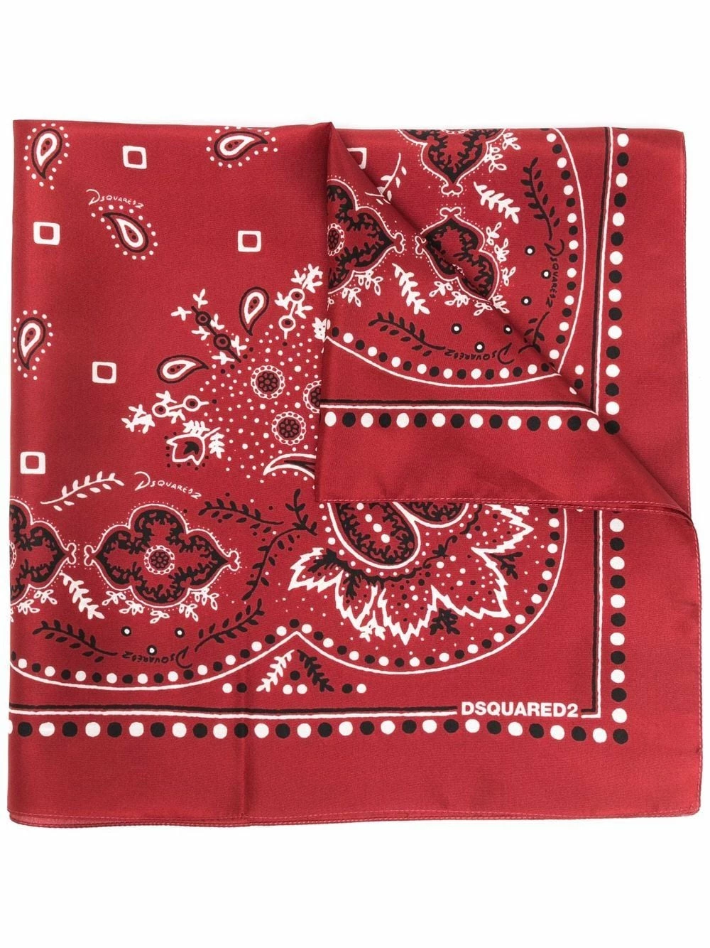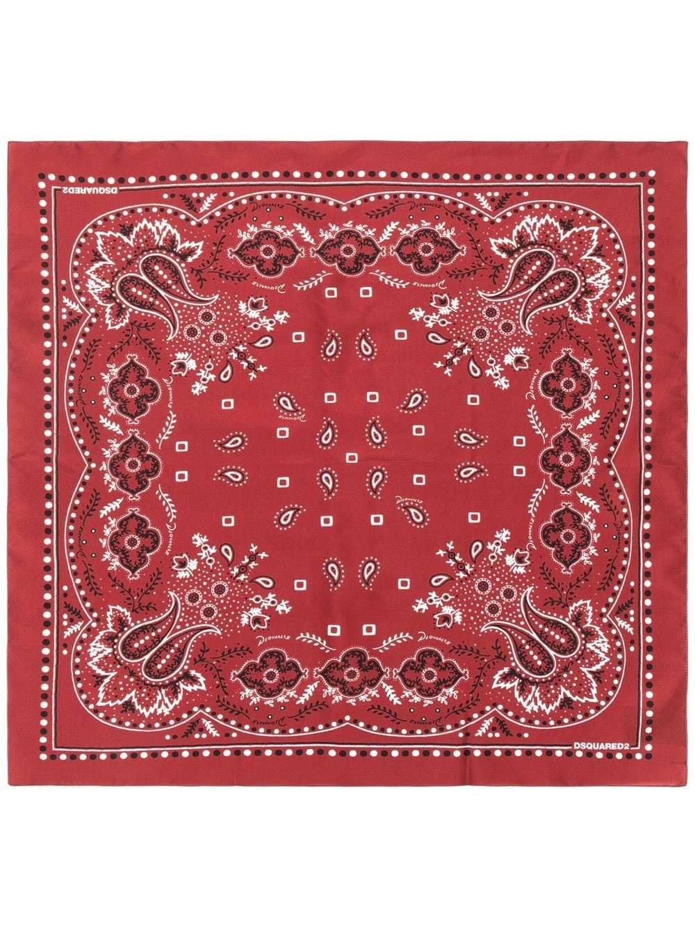 Motif cachemire, forme carrée, coutures ton sur ton. Matière : soie.