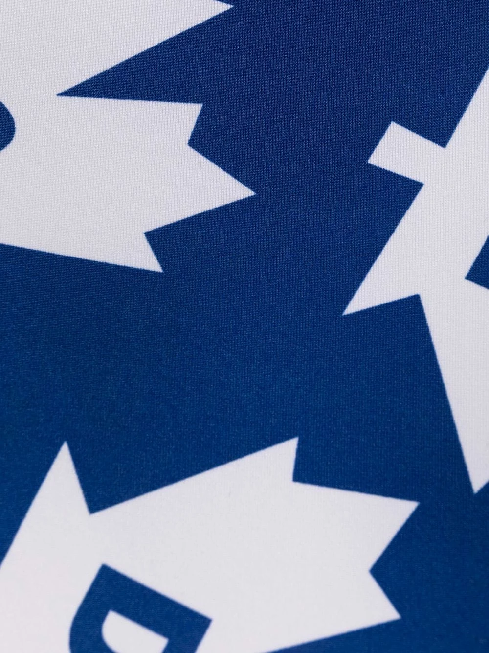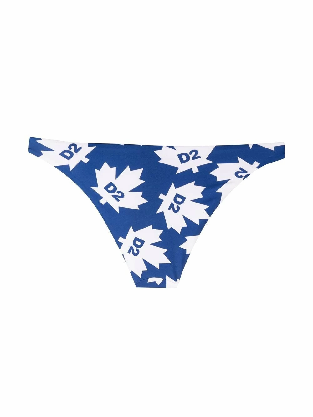 Imprimé feuille d’érable, imprimé graphique intégral, coupe slim. Couleur : bleu. Veillez à essayer les maillot de bain par-dessus vos propres sous-vêtements.