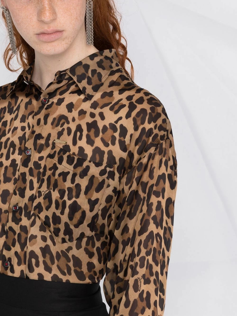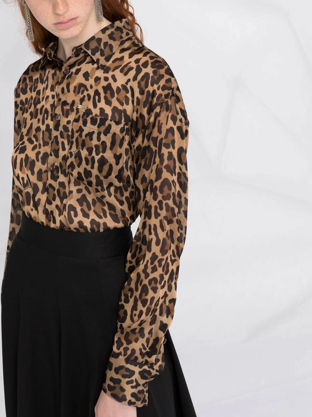Imprimé léopard, col classique, boutonnière sur le devant, manches longues.