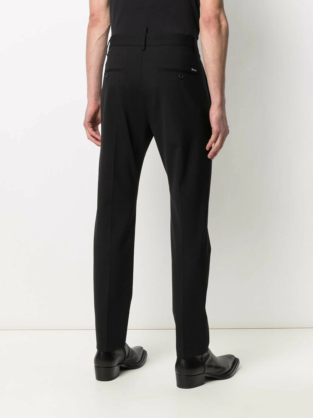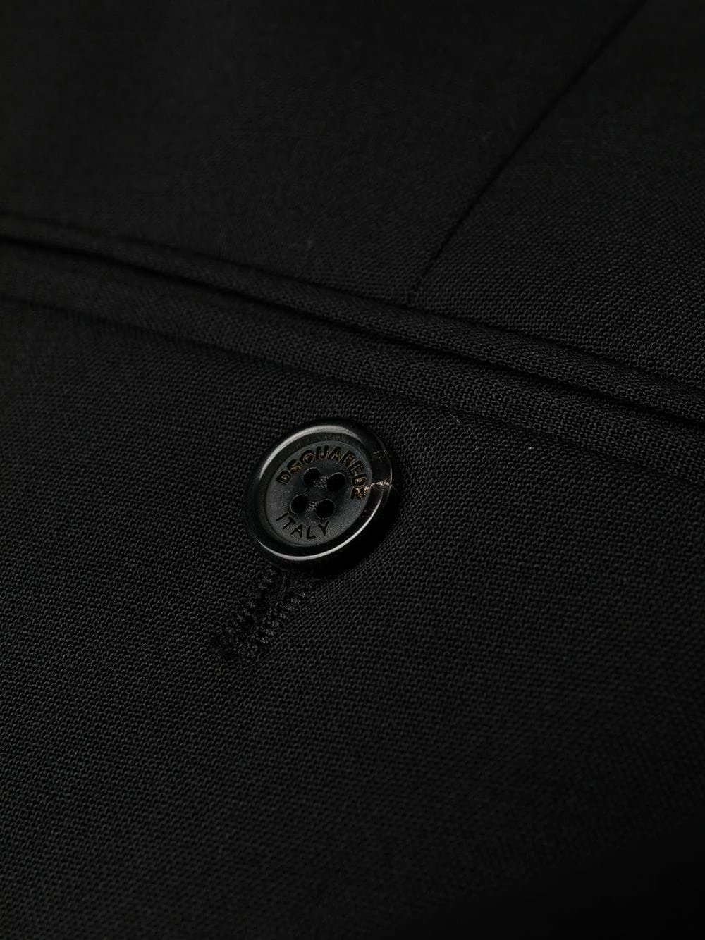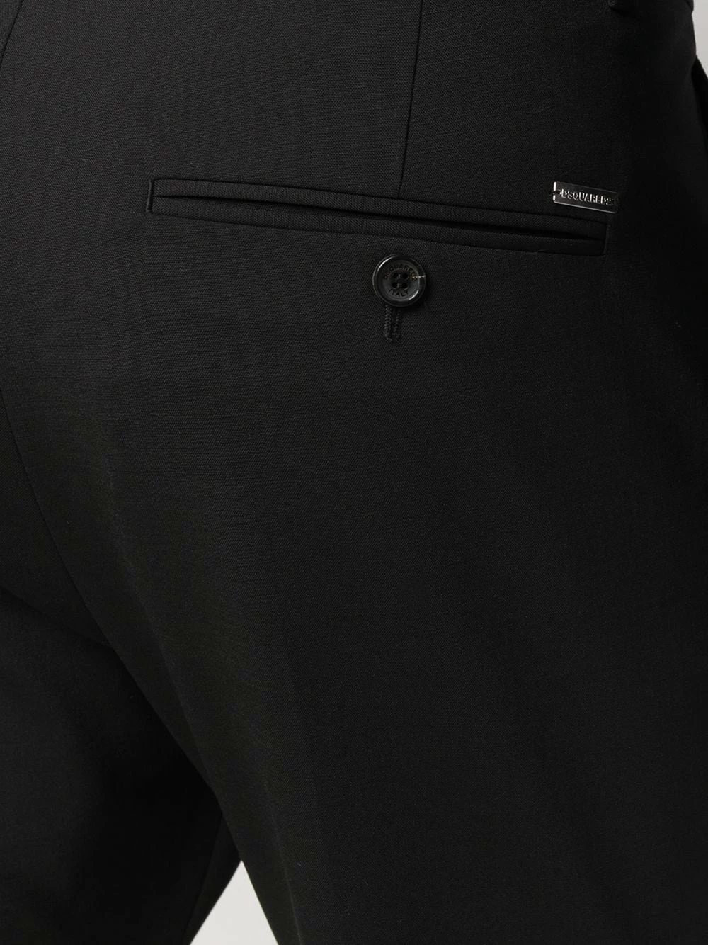 Taille haute, fermeture à zip et boutons sur le devant, poches plaquées latérales, coupe droite, hauteur cheville. Couleur : Noir.