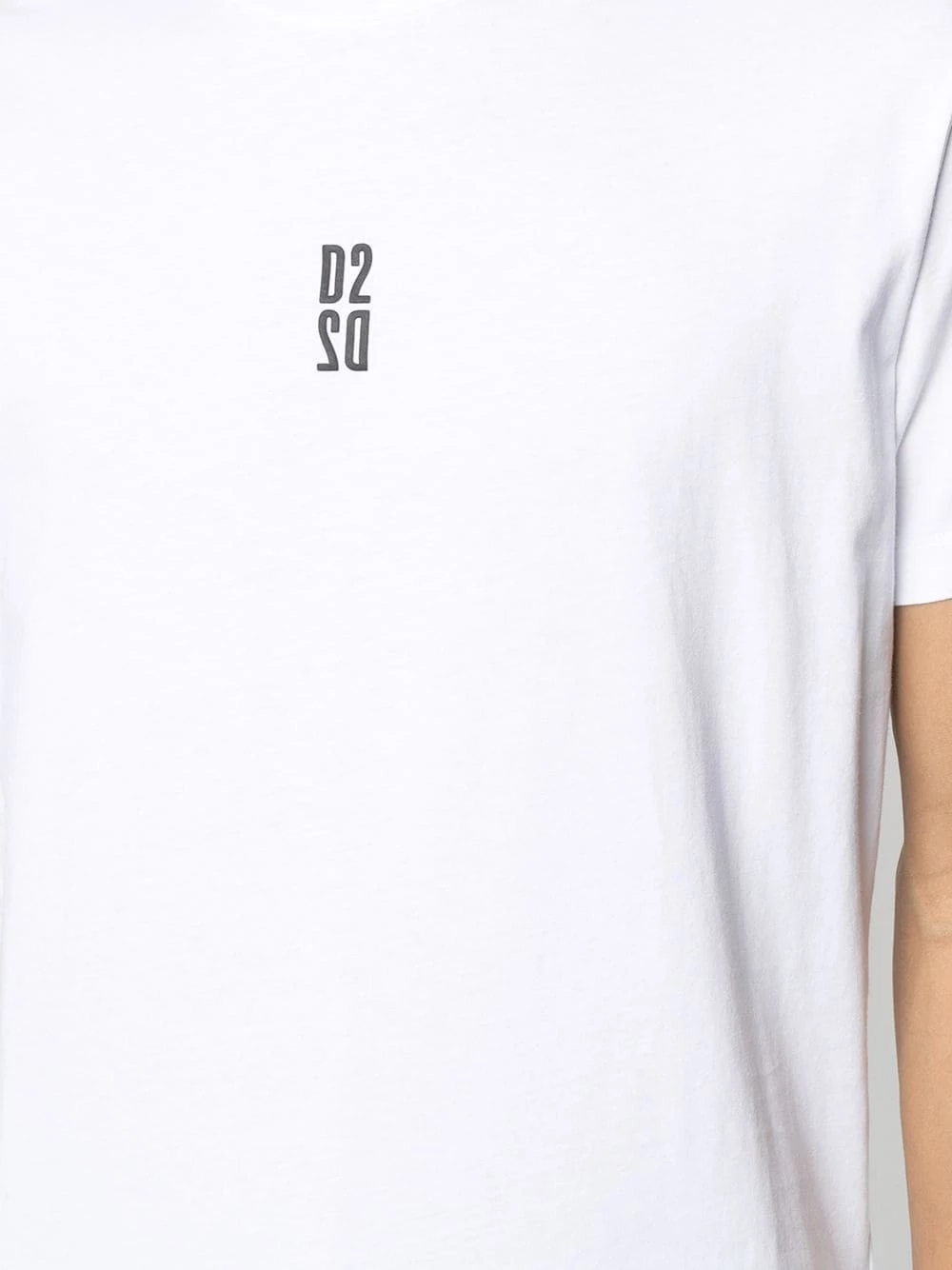 Encolure ronde, manches courtes, logo imprimé sur le devant, ourlet droit. Couleur : blanc. Matière : coton.