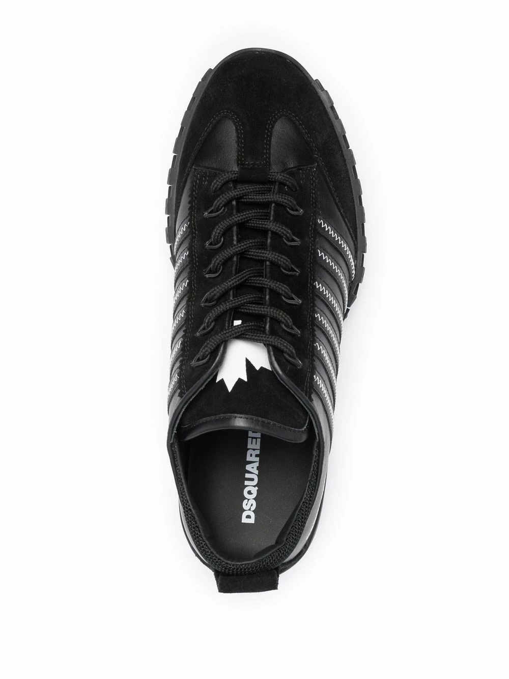 Bout rond, fermeture à lacer sur le devant, logo imprimé sur le côté, coutures contrastantes, imprimé feuille d’érable, semelle intérieure à logo, semelle plate. Couleur : noir.