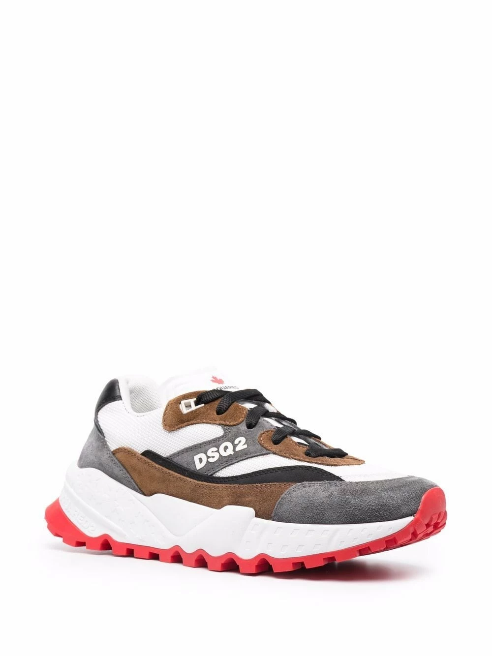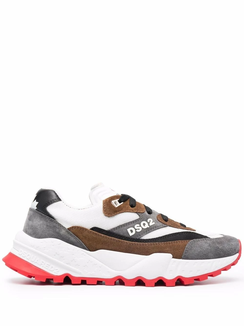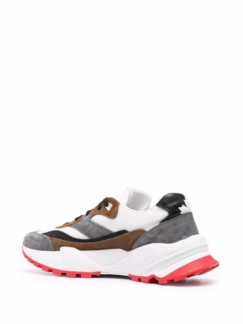 Bout rond, semelle plate en caoutchouc, fermeture à lacer sur le devant, semelle intérieure à logo, design à empiècements. Matière : cuir.