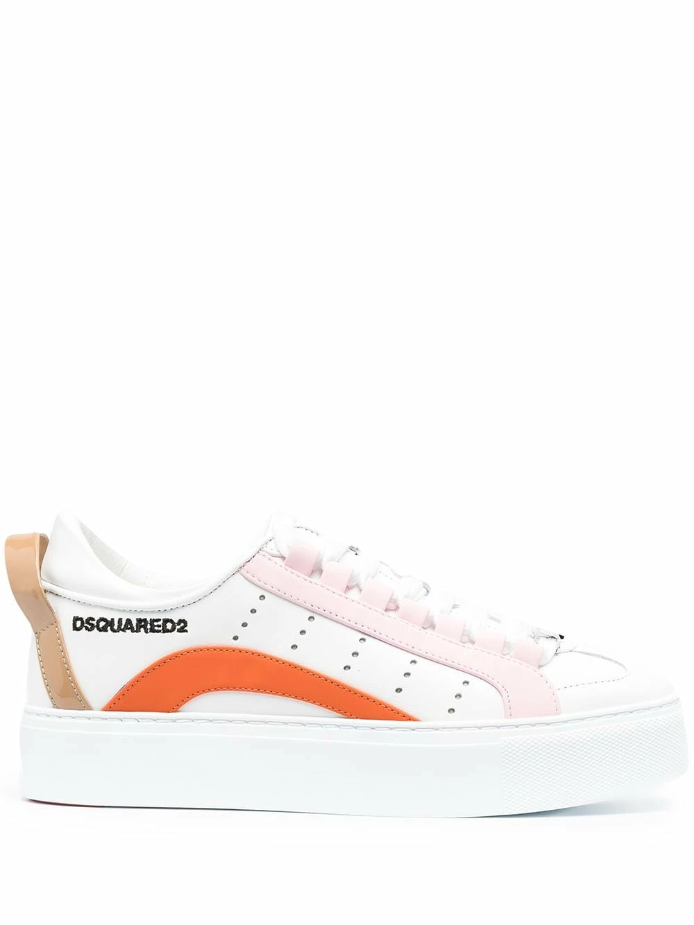Design colour block, bout rond, fermeture à lacer sur le devant, languette d’enfilage au talon, logo imprimé sur le côté, semelle épaisse en caoutchouc. Matière : cuir de veau.