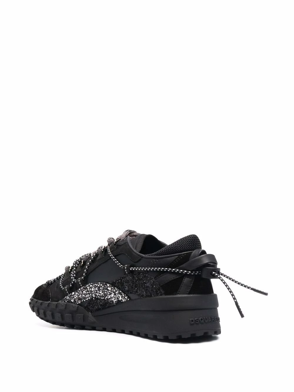 Détail pailleté, bout rond, fermeture à lacer sur le devant, semelle intérieure à logo, semelle en caoutchouc.