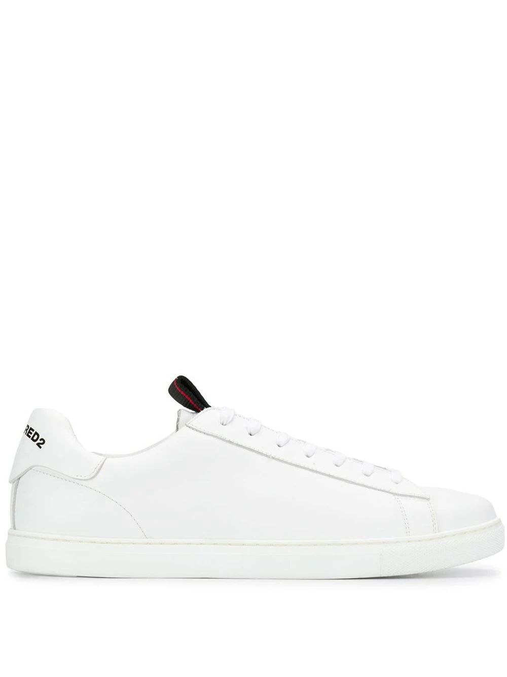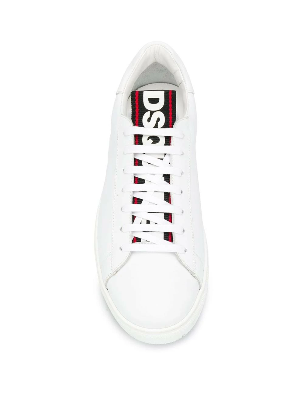 Baskets à logo Dsquared2 avec bout rond, fermeture à lacer sur le devant, patch logo sur la languette, patch à logo à l’arrière et semelle en caoutchouc blanc. Couleur : blanc.