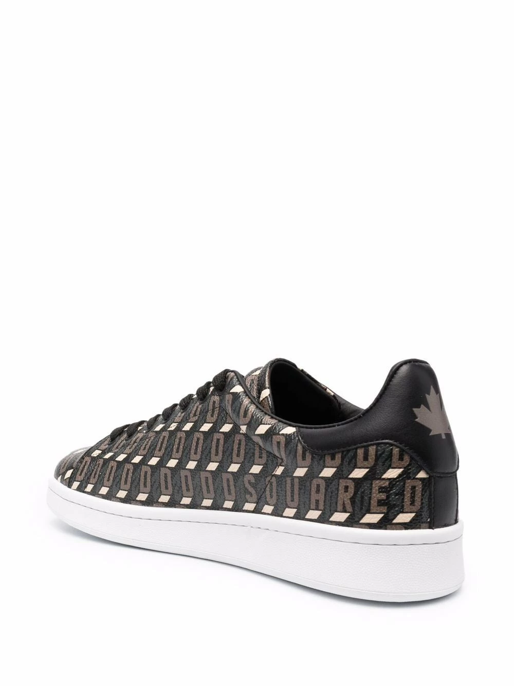Motif monogrammé, bout rond, fermeture à lacer sur le devant, semelle à plateforme. Matière : cuir.