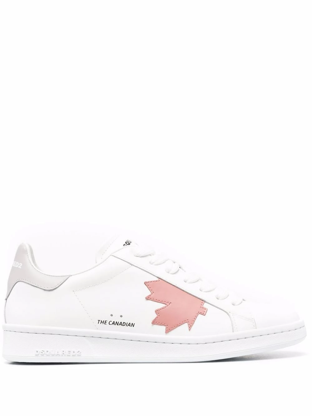 Imprimé feuille d’érable, languette à logo imprimé, logo imprimé à l’arrière, contrefort contrastant, fermeture à lacer sur le devant, semelle intérieure griffée, bout rond, semelle plate en caoutchouc. Matière : cuir.