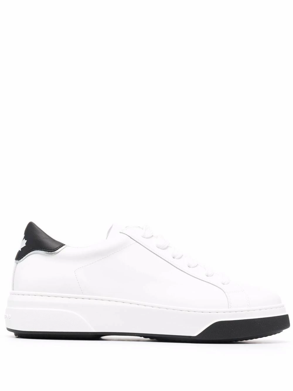 Contrefort contrastant, semelle intérieure à logo, fermeture à lacer sur le devant, bout en amande, semelle épaisse en caoutchouc. Matière : cuir de veau.