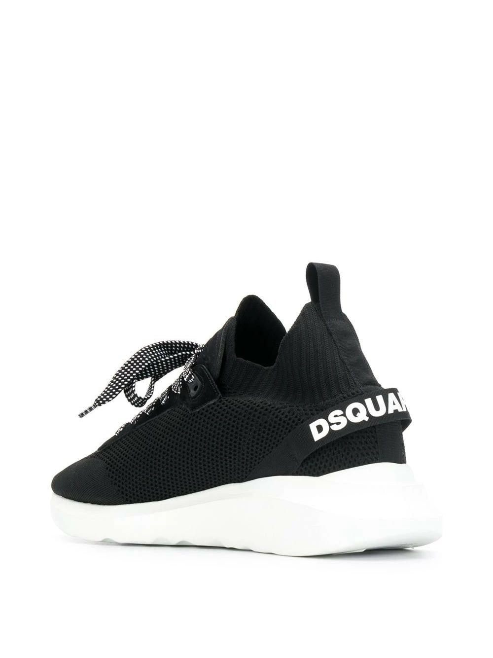 Baskets en maille Dsquared2 avec bout rond, fermeture à lacer sur le devant, patch logo sur la languette, languette arrière, a fabric sock liner, monogramme sur le talon et semelle en caoutchouc blanc. Couleur : noir.