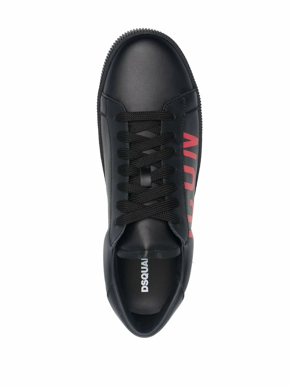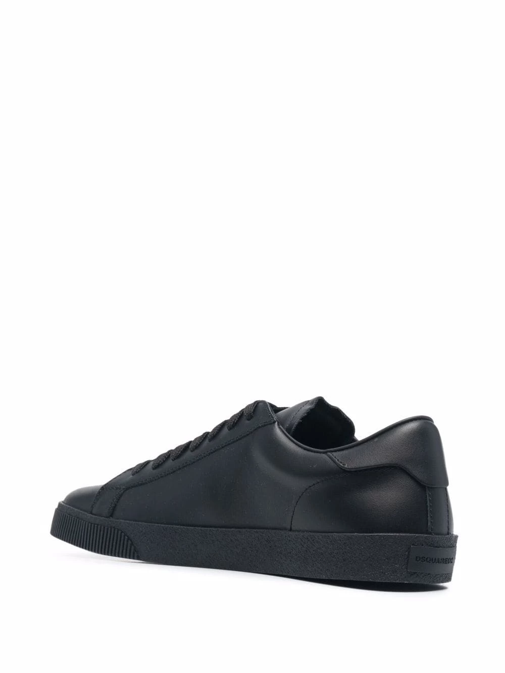 Bout rond, fermeture à lacer sur le devant, coutures ton sur ton, logo floqué, semelle intérieure à logo, logo imprimé sur le côté, chevilles rembourrées, patch logo sur l’arrière, semelle plate. Couleur : noir. Matière : cuir.