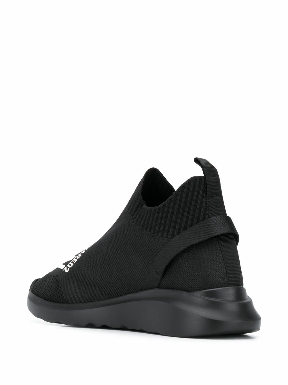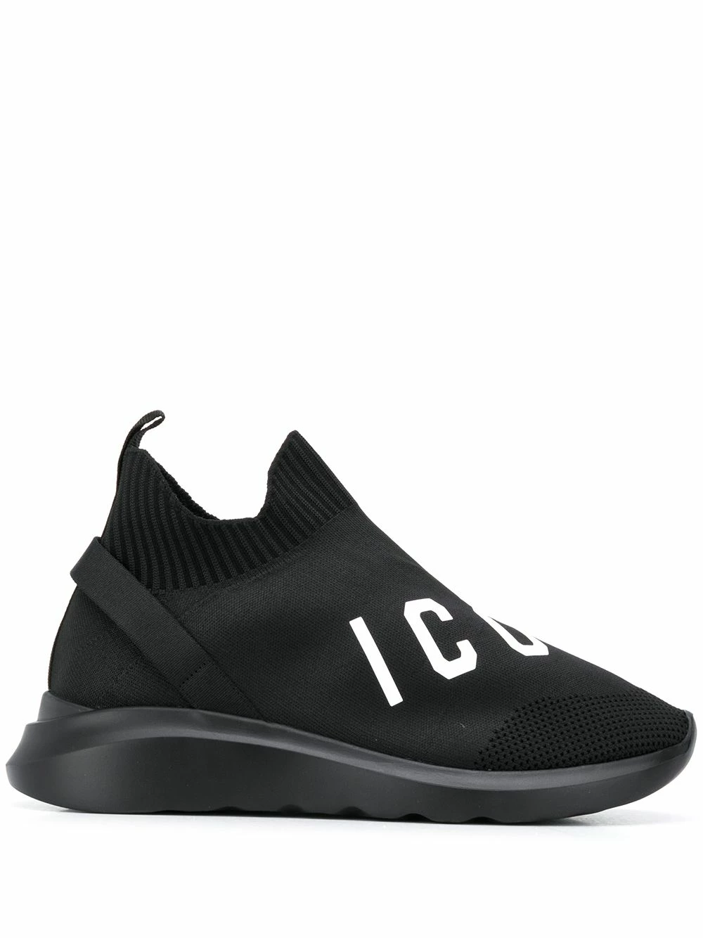 Logo imprimé sur le devant, bordures nervurées, languette d’enfilage au talon, bout rond, design à enfiler, semelle plate en caoutchouc. Couleur : Noir.
