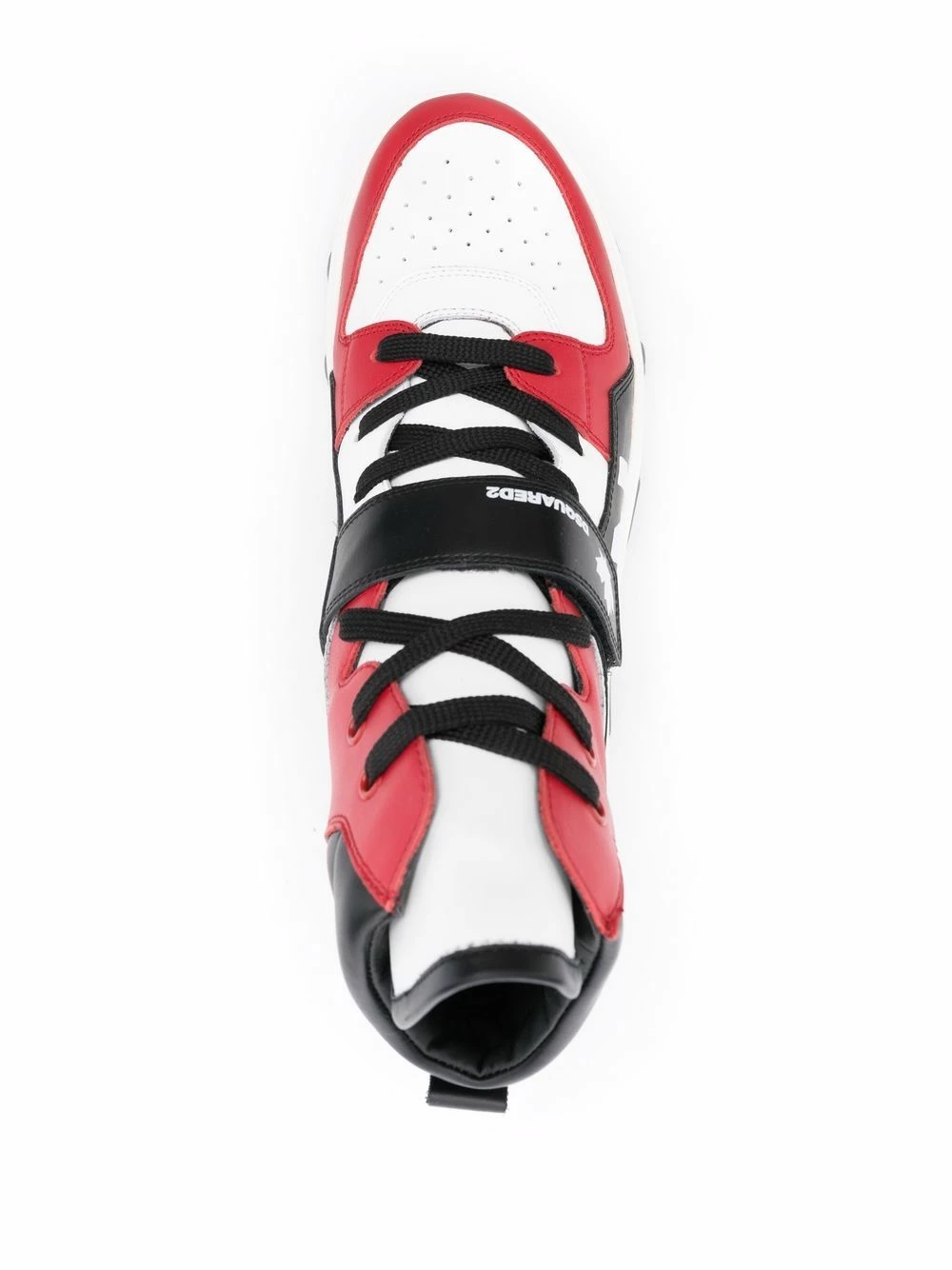 Design à empiècements, slogan imprimé, bout rond, fermeture à lacer sur le devant, hauteur cheville, semelle à plateforme. Matière : cuir.