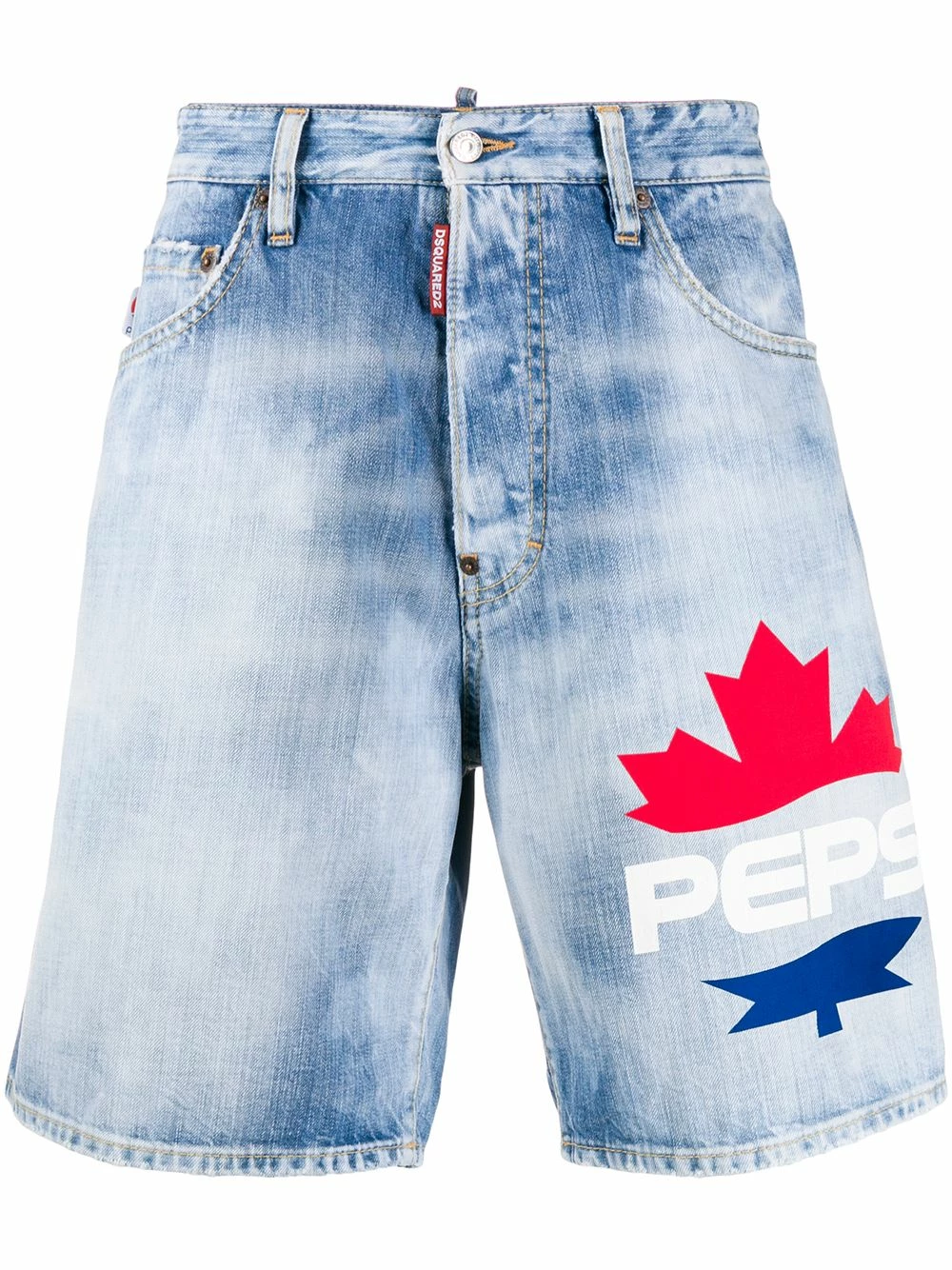 Bermuda en denim à logo imprimé en coton mélangé Dsquared2 avec passants de ceinture, bouton et zip, poches latérales fendues, poches arrière plaquées, logo imprimé sur le devant, logo imprimé à l’arrière et hauteur genou.