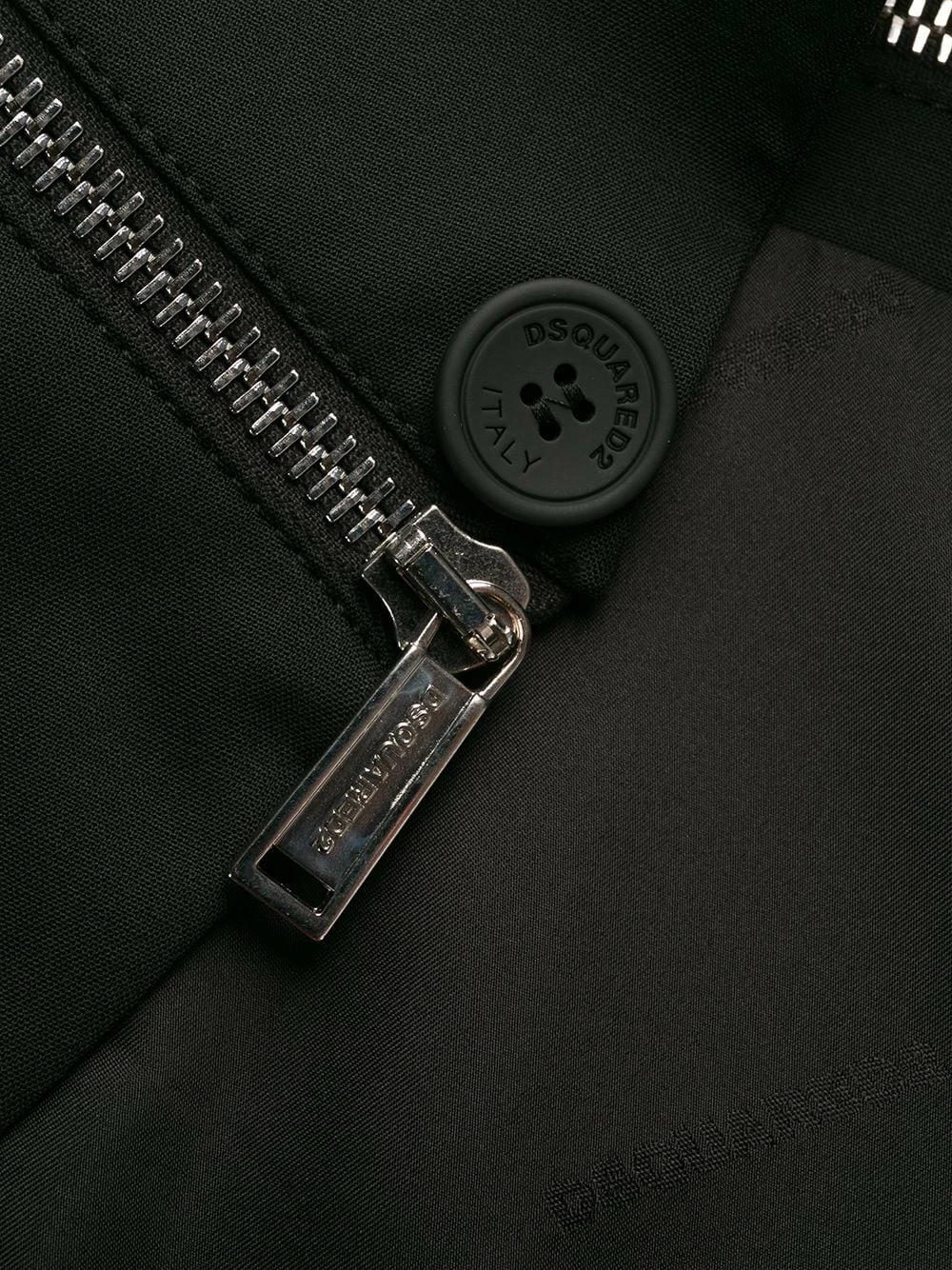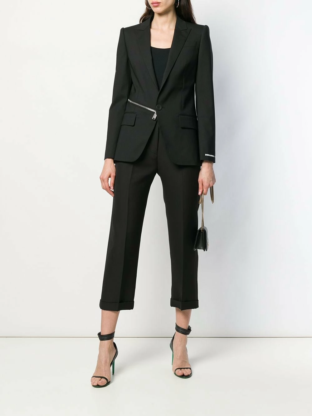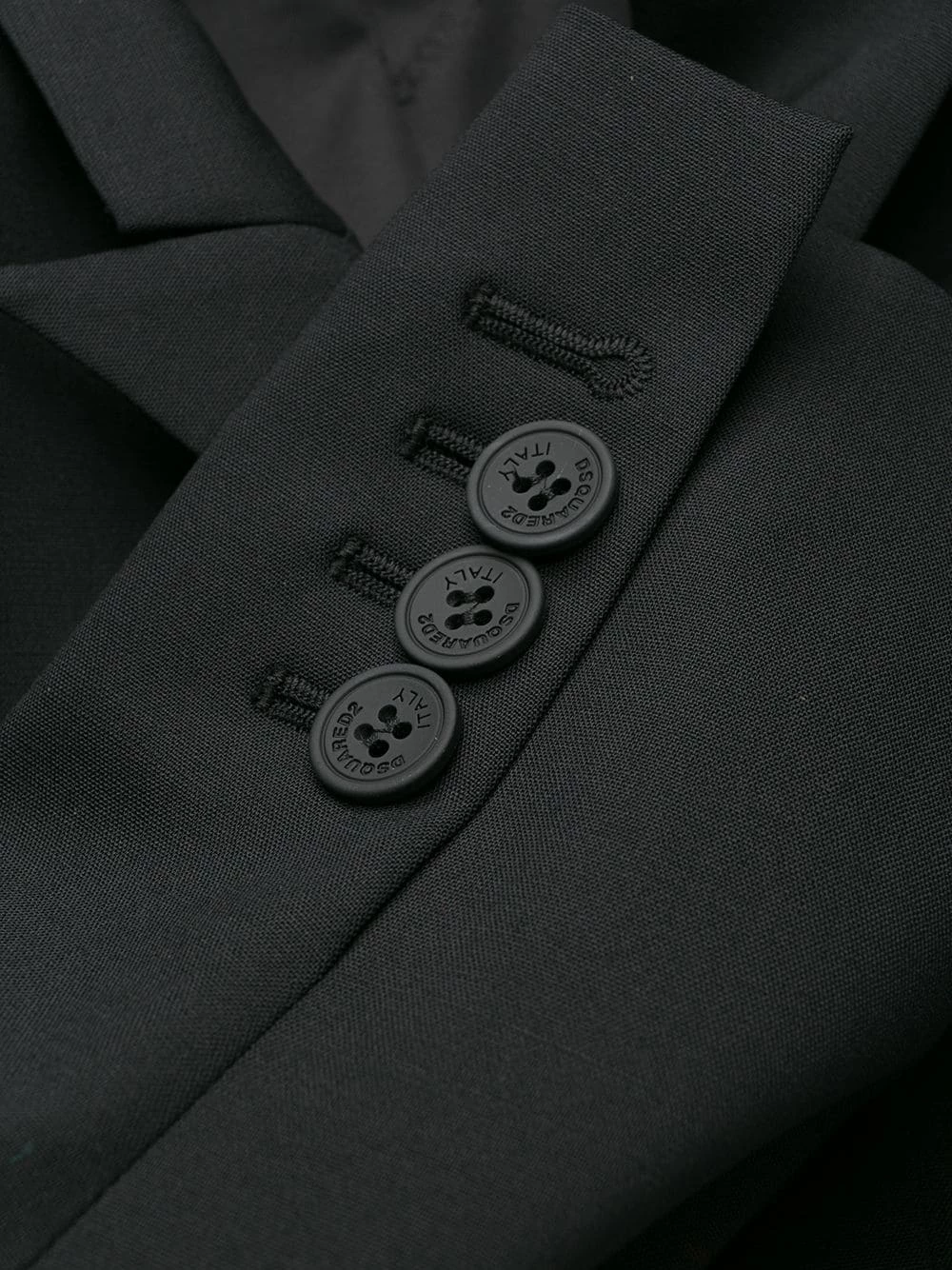 Blazer à détails zippés Dsquared2 avec boutonnière sur le devant, poches devant à rabat, détails de coutures, finitions argentées, fermeture zippée latérale, poignets boutonnés et fente arrière. Couleur : noir.