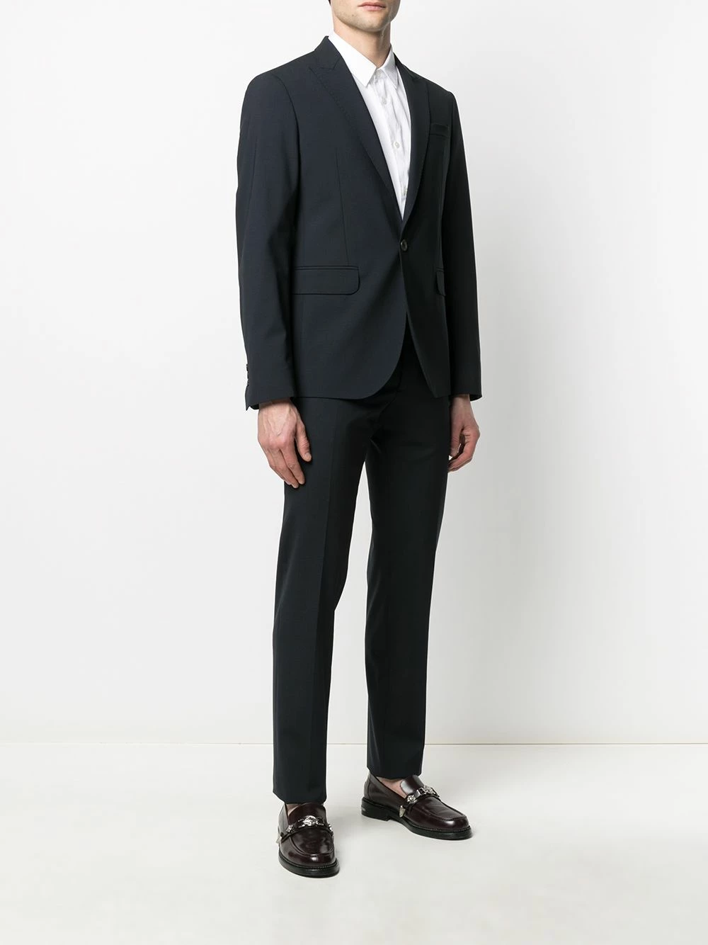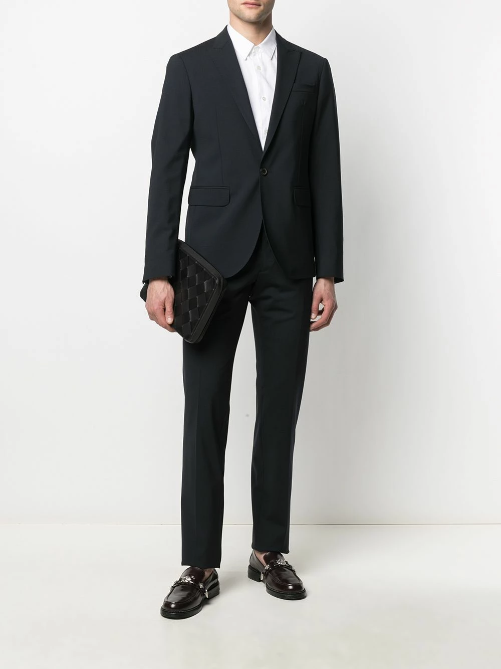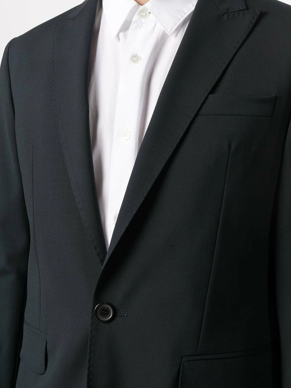 Revers pointus, épaulettes, boutonnière sur le devant, manches longues, poches devant à rabat, double fente arrière.