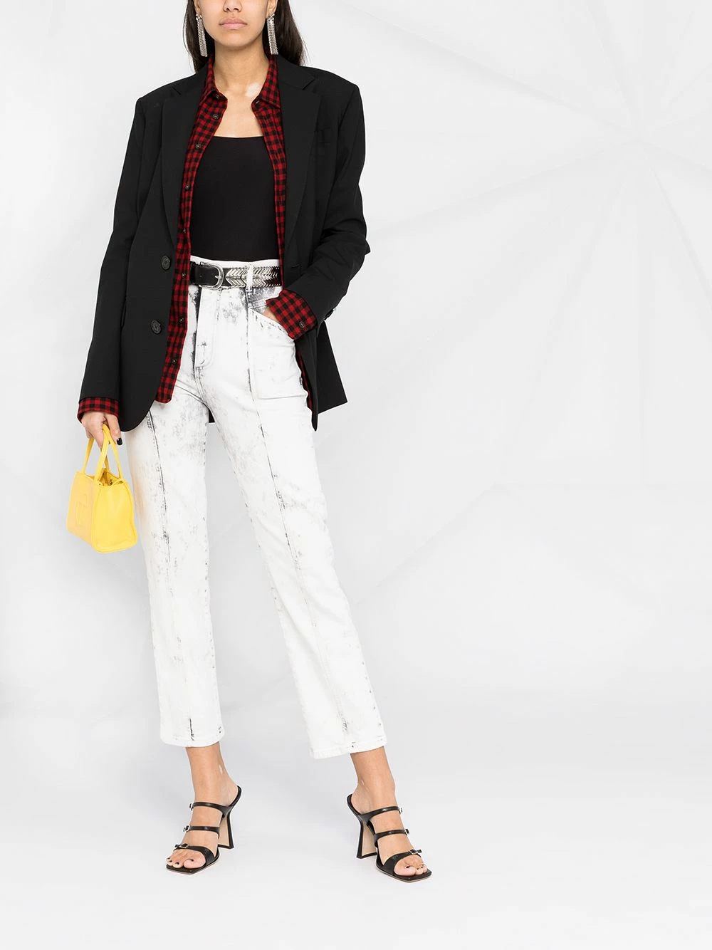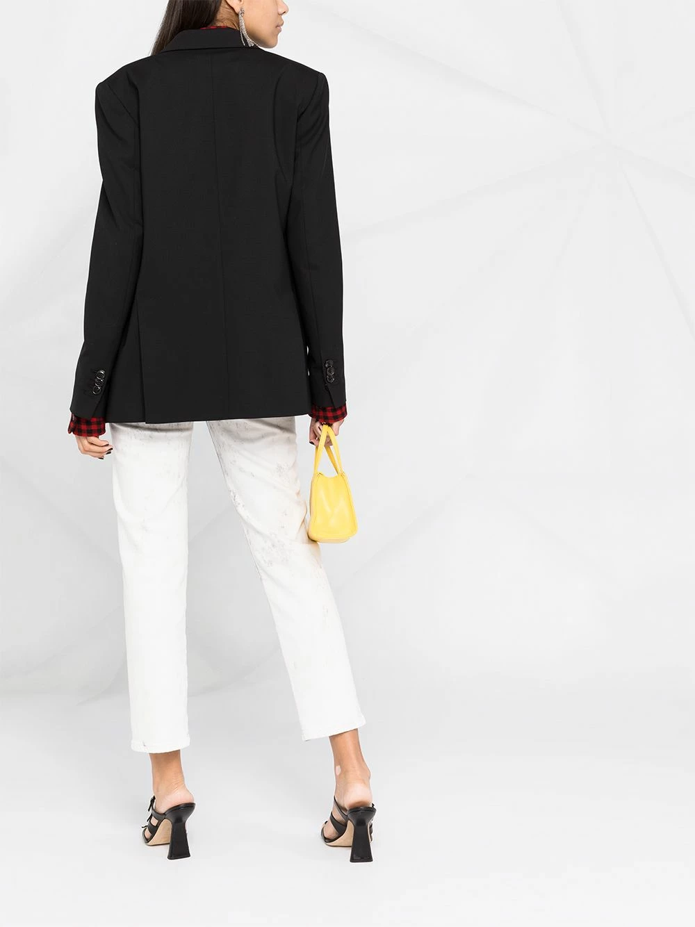 Revers crantés, boutonnière sur le devant, poche passepoilée sur la poitrine, poches latérales à rabat, manches longues, poignets boutonnés, double fente arrière. Couleur : Noir.
