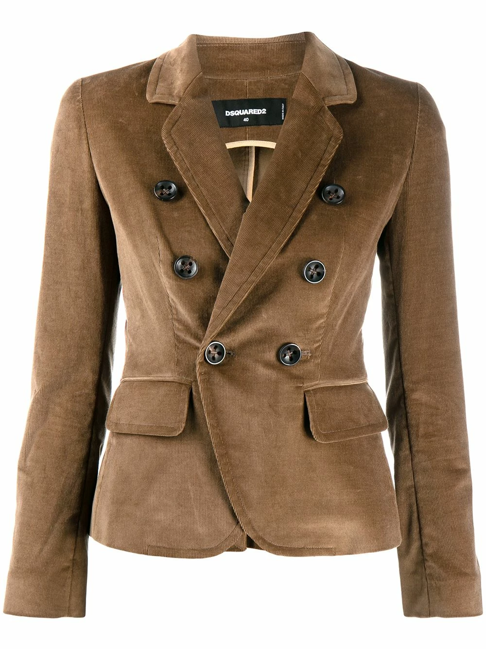 Blazer en velours côtelé et boutonnière croisée en coton Dsquared2 avec coupe courte, col v, fixation à boutons et poches devant.
