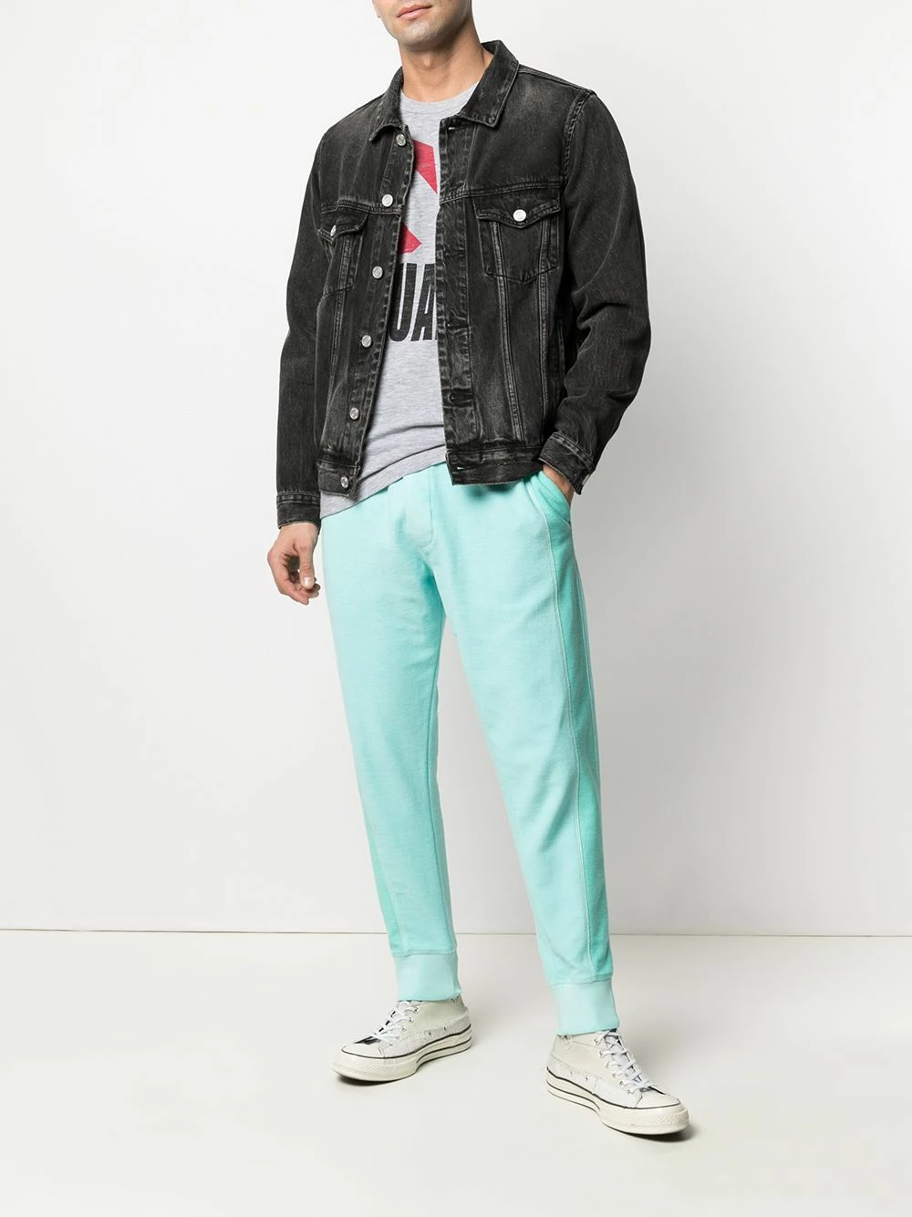 Tricot point jersey, coupe fuselée, ceinture élastique. Matière : coton.