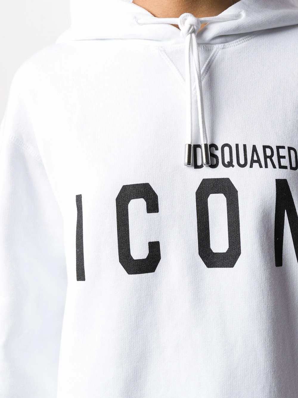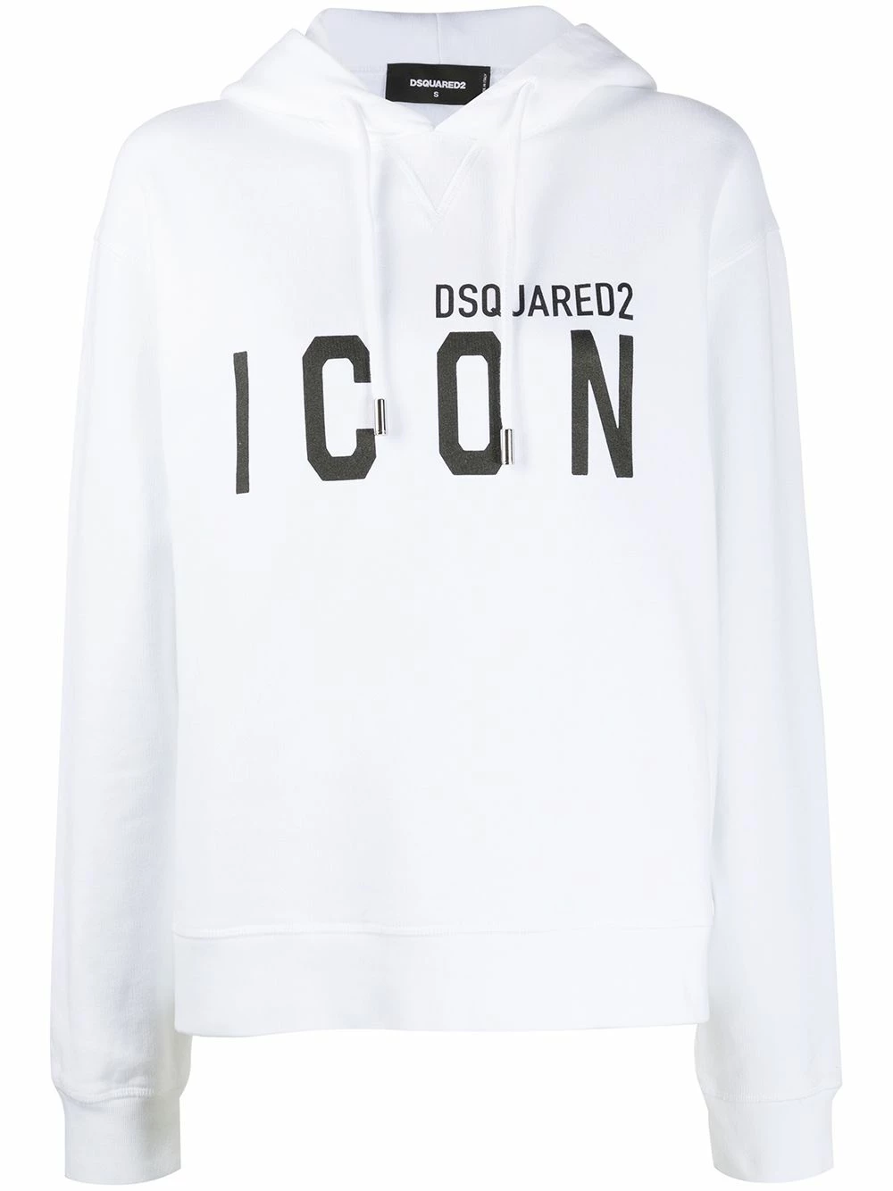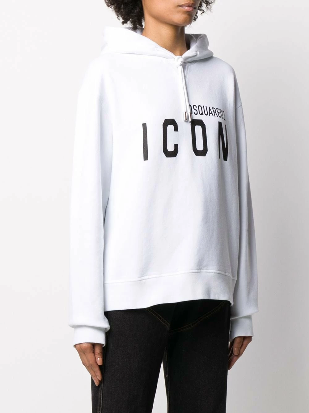 Sweat à capuche imprimé Icon en coton Dsquared2 avec capuche à lien de resserrage, manches longues, effet d’épaules descendues, ourlet et poignets nervurés, logo imprimé au centre et coupe ample. Couleur : blanc.