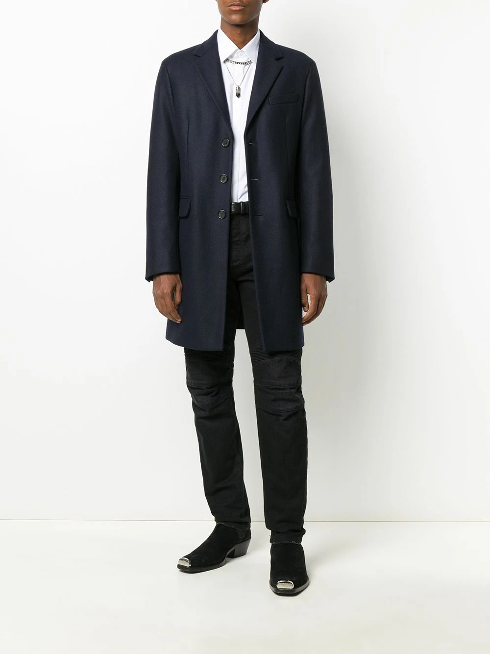 Col pointu, boutonnière sur le devant, manches longues, manches à poignets boutonnés, ourlet incurvé. Couleur : blanc. Matière : coton.