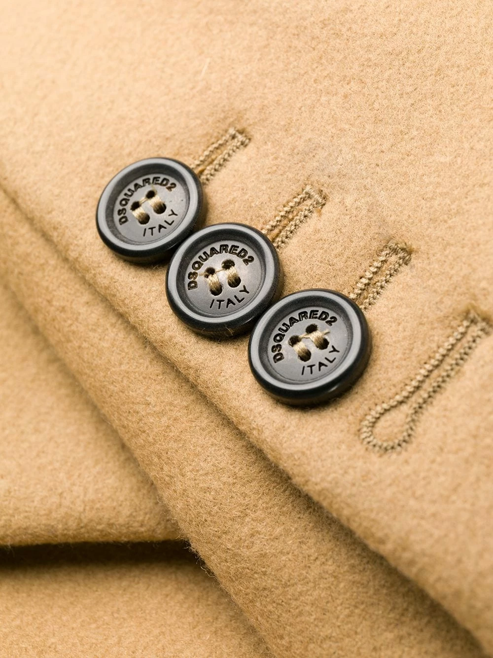 Manteau droit à poches à rabat en laine Dsquared2 avec revers crantés, manches longues, poches devant à rabat, coupe midi et fermeture boutonnée.