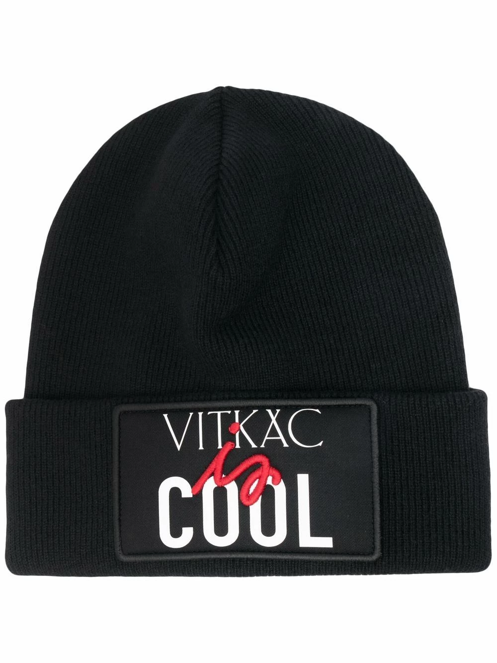 Design en maille, patch logo sur le devant, bord retroussé, design à enfiler. Matière : laine.