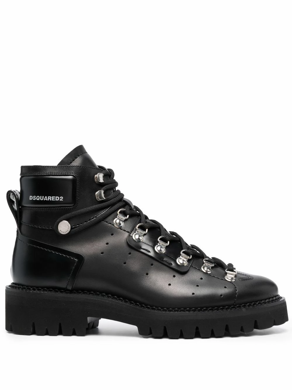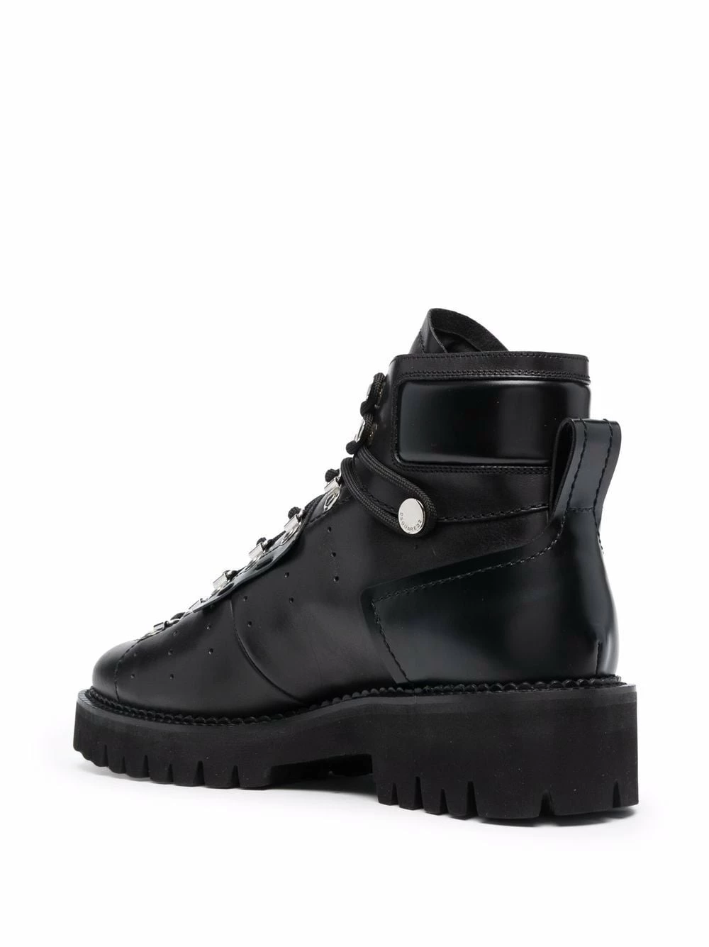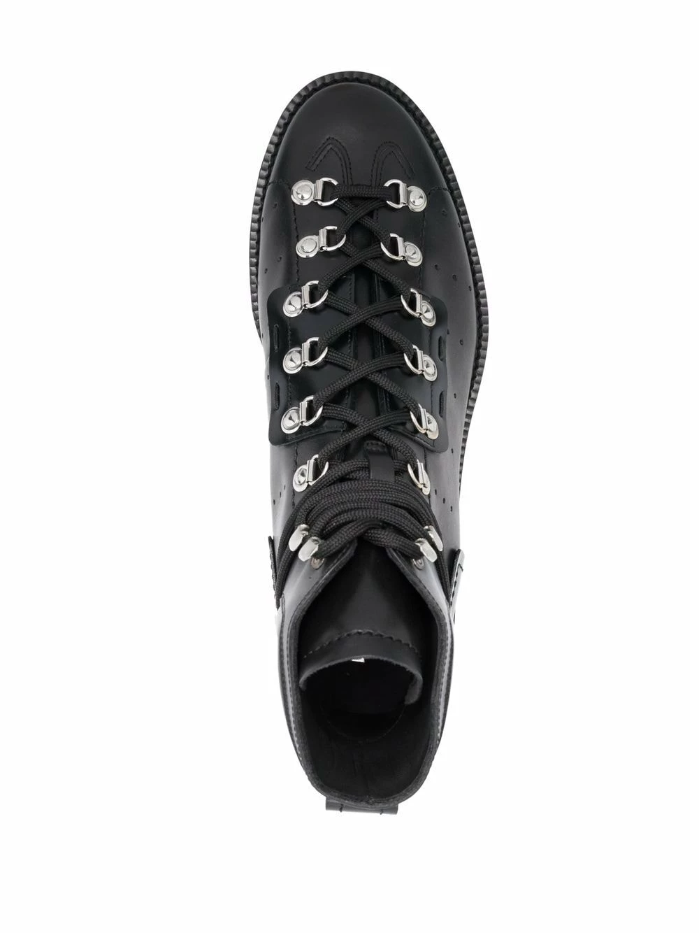 Détails de perforations, fermeture à lacer sur le devant, logo imprimé sur le côté, bout en amande, petit talon nervuré. Couleur : noir.