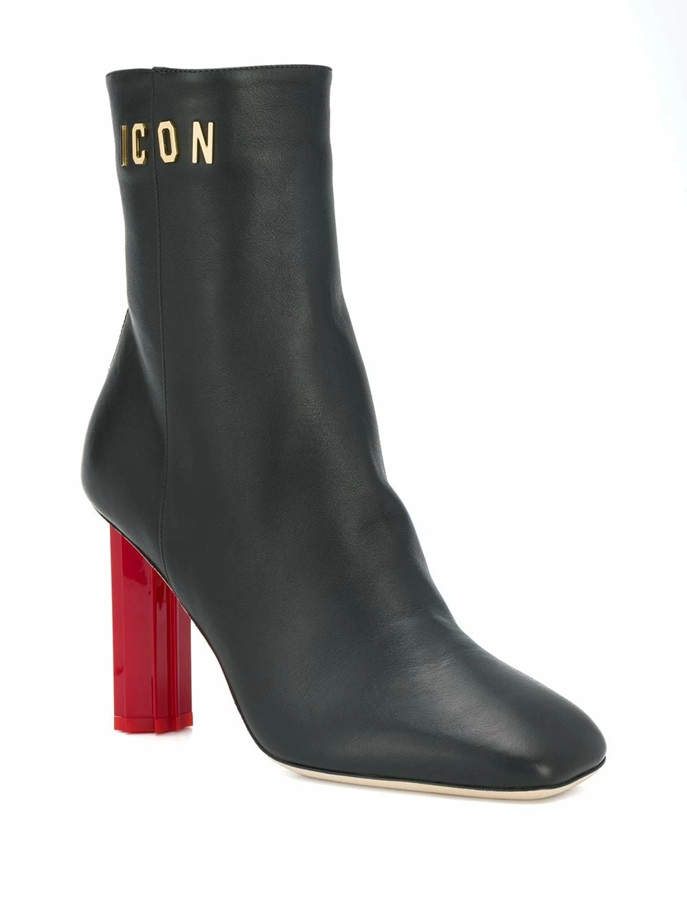 Bottines Icon en cuir de veau Dsquared2 avec bout rond, fermeture zippée latérale et talon haut sculpté.