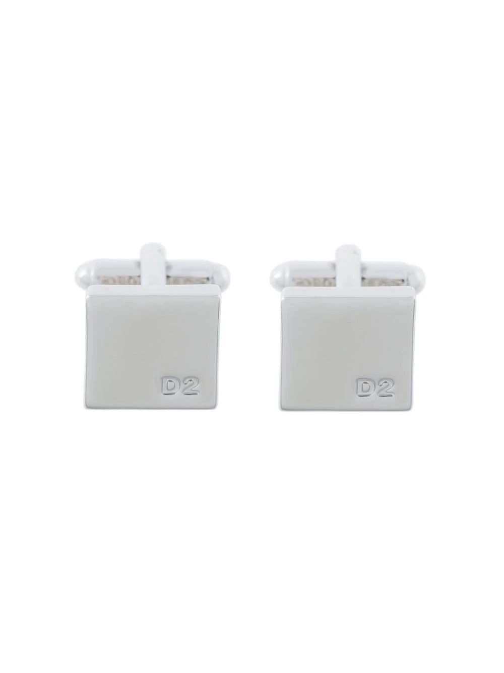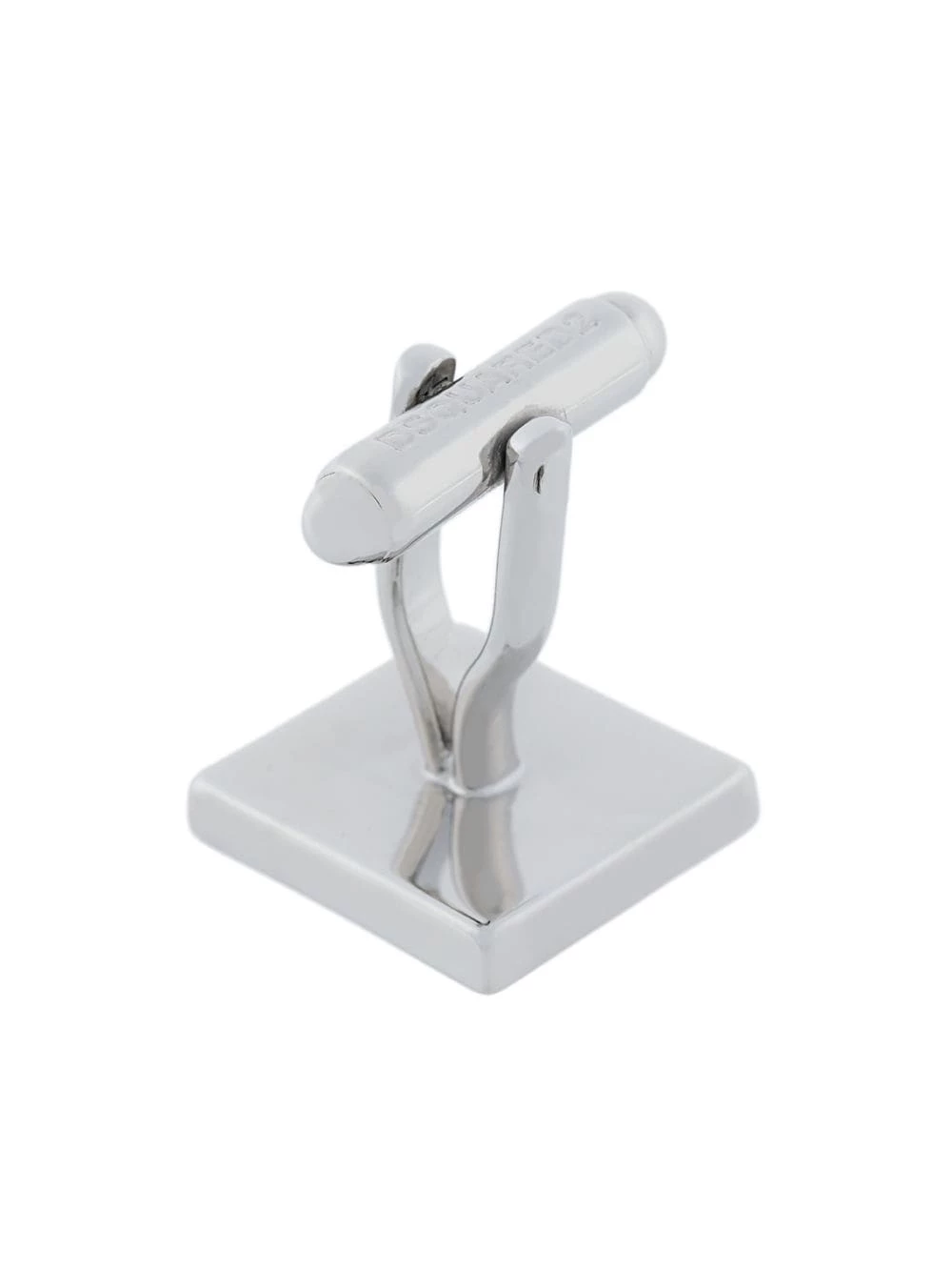 Boutons de manchette carrés à logo en étain argenté Dsquared2 avec attaches à têtes pivotantes.