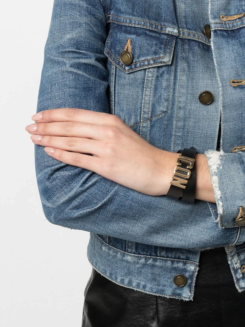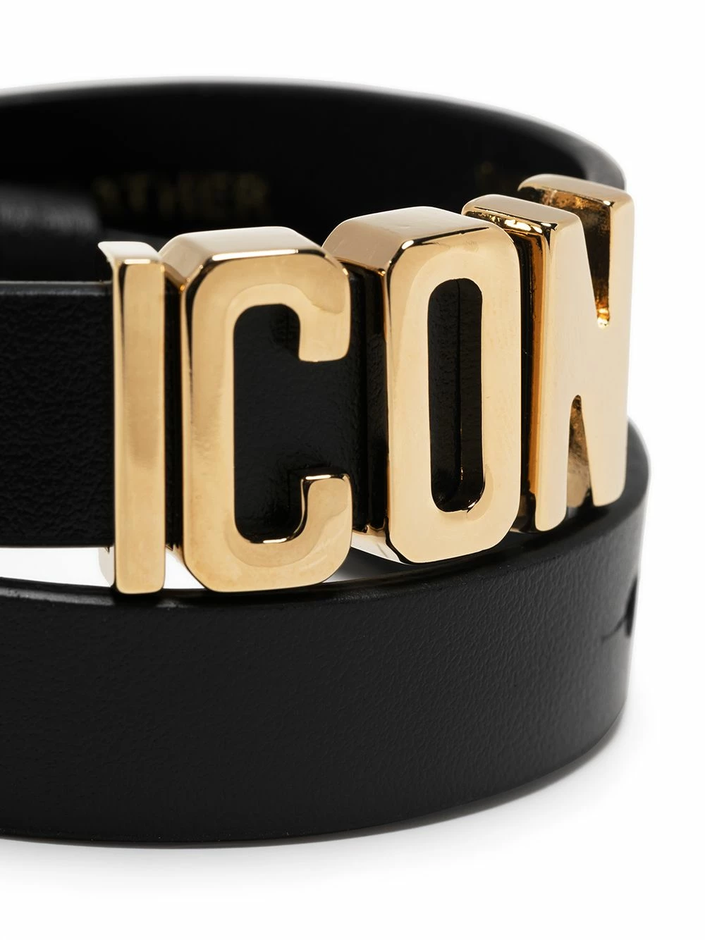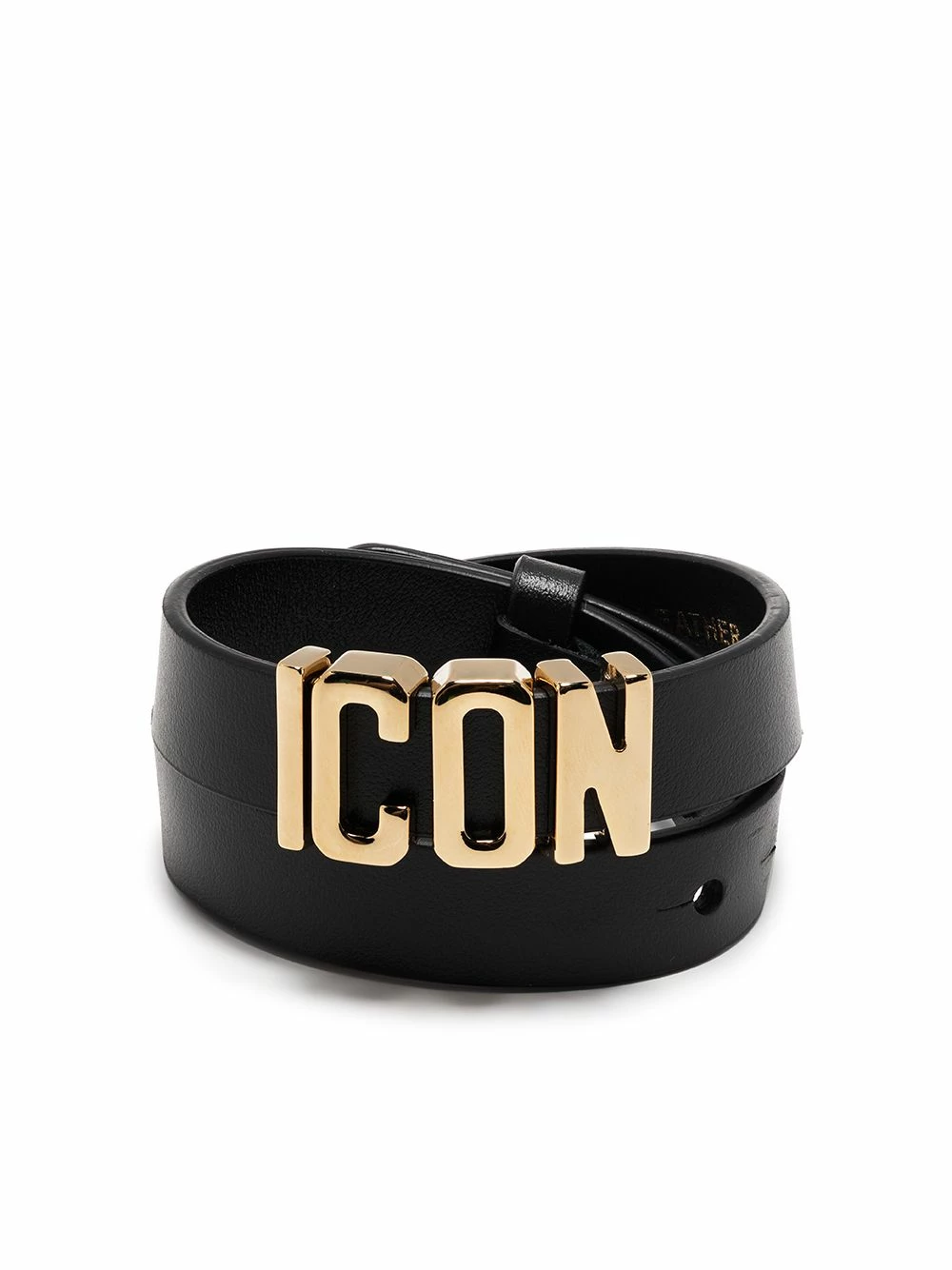 Rayure Icon signature, taille ajustable. Couleur : noir. Matière : cuir de veau.