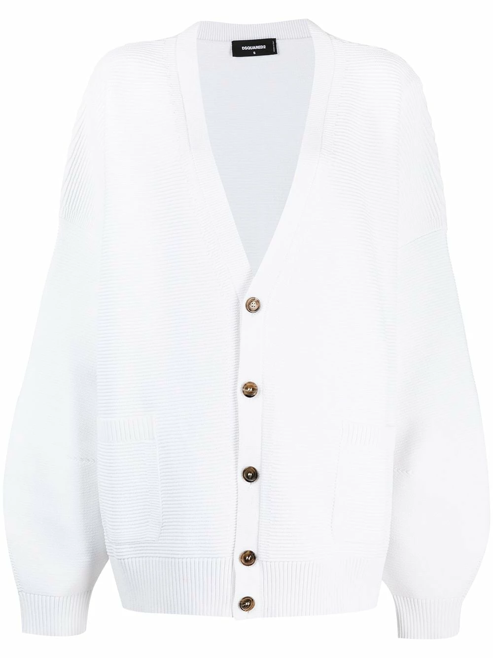 Col v, boutonnière sur le devant, manches longues, deux poches plaquées avant, ourlet droit. Couleur : Blanc.